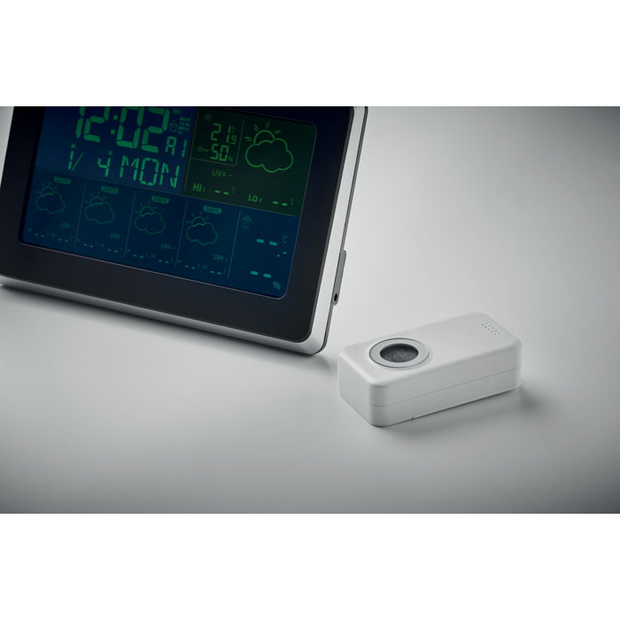 Wi-Fi метеостанция с цветным дисплеем. Отображает температуру (внутри и снаружи), время, прогноз погоды, будильник. 5 батареек типа ААА в комплект не входят. В комплект входит адаптер AC-DC и датчик наружной температуры. Требуется бесплатное приложение (TUYA Smart доступно для iOS и Android). -
