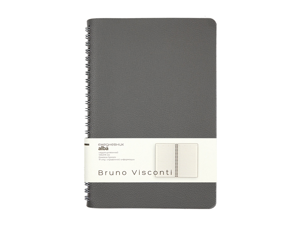 Недатированный ежедневник Alba ТМ Bruno Visconti формата А5 сочетает в себе два тренда, набирающих популярность среди современных деловых людей: полускрытый гребень, позволяющий переворачивать листы на 360 градусов, и мягкая гибкая обложка из искусственной кожи высокого качества исполнения.