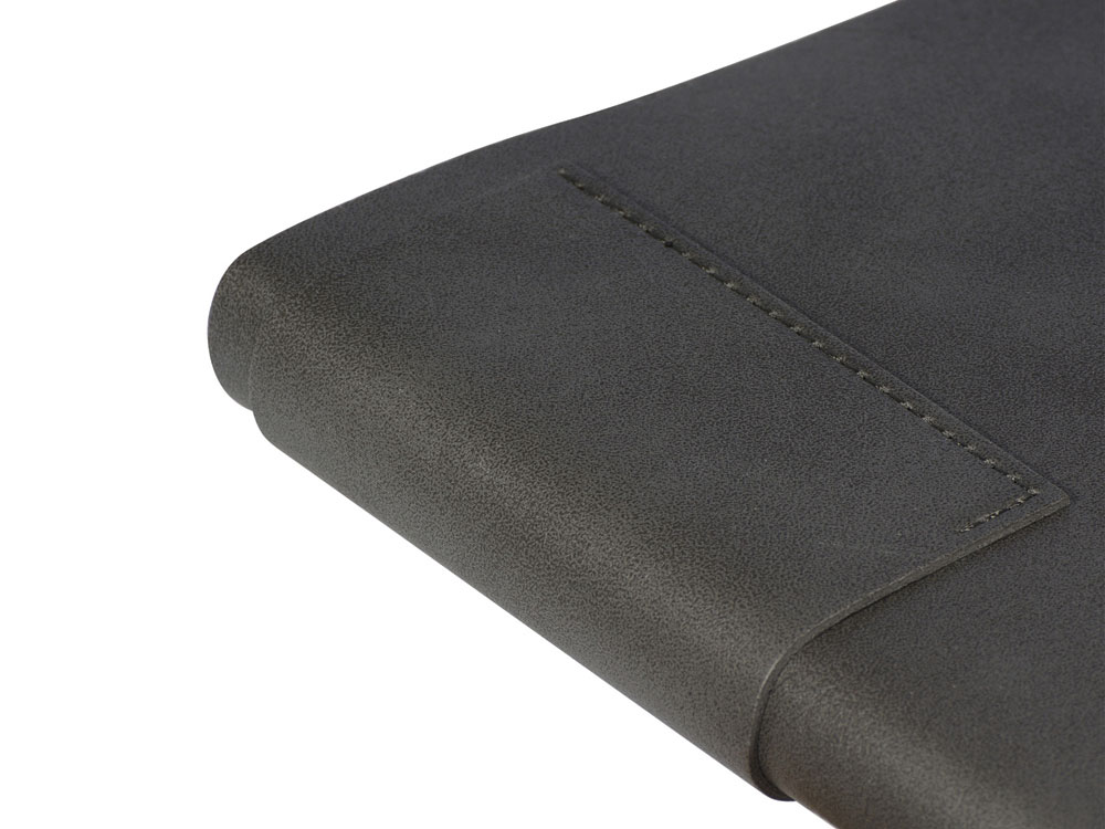 Лаконичная модель в ярком исполнении: гибкая обложка серого цвета с контрастной или в цвет обложки нашивкой. Выполнен из качественной и прочной искусственной кожи, крепление внутреннего блока - книжный переплет, закладка- ляссе. Углы обложки скруглены.