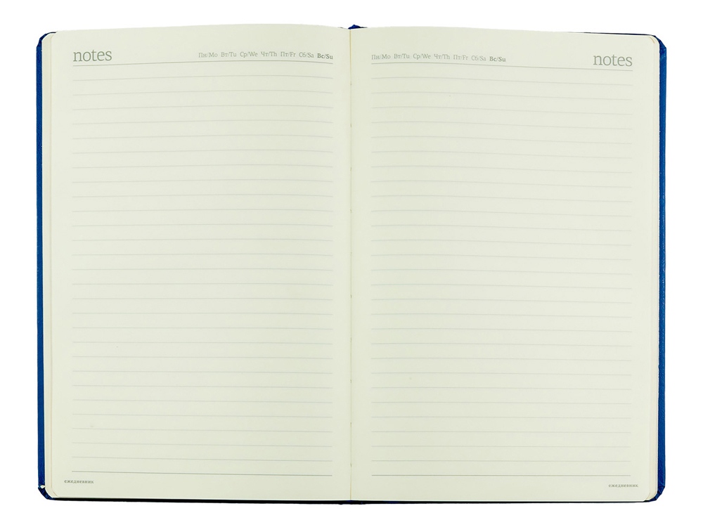Ежедневник выпускается в универсальном формате А5. Размер обложки – 144*215 мм. В недатированном блоке для записей 320 страниц из тонированной бумаги бежевого цвета. Бумага плотностью 70 г/м2.