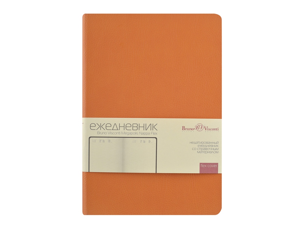 Обложка недатированного ежедневника Megapolis Nappa Flex ТМ Bruno Visconti произведена из искусственной кожи без применения переплетного картона, благодаря чему он легче и изящнее классических. Его можно свернуть в трубочку, обложка и блок не пострадают. При этом, для ежедневника формата А5 доступны те же опции, что и для любых других ежедневников — окрашенный обрез, крупнозернистая фактура искусственной кожи обложки, двойное ляссе 7 мм.