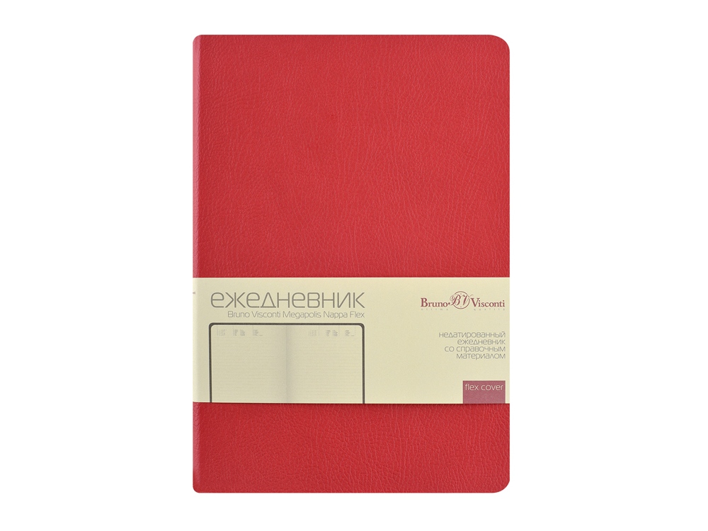 Обложка недатированного ежедневника Megapolis Nappa Flex ТМ Bruno Visconti произведена из искусственной кожи без применения переплетного картона, благодаря чему он легче и изящнее классических. Его можно свернуть в трубочку, обложка и блок не пострадают. При этом, для ежедневника формата А5 доступны те же опции, что и для любых других ежедневников — окрашенный обрез, крупнозернистая фактура искусственной кожи обложки, двойное ляссе 7 мм.