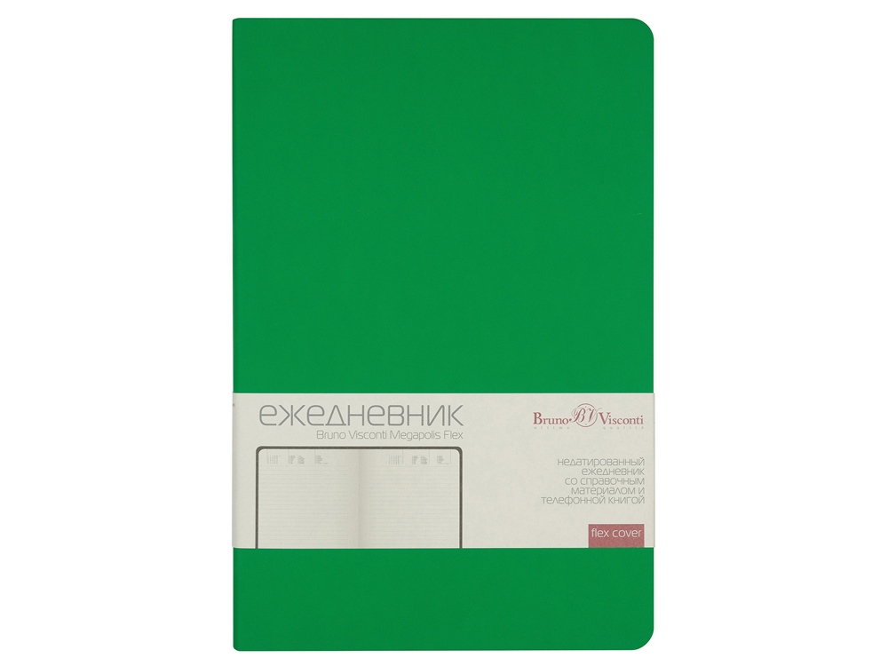 Недатированный ежедневник Megapolis Flex от бренда Bruno Visconti - это качественный корпоративный подарок по выгодной цене, произведенный специально под персонализацию. Представлен в универсальном формате А5 и состоит из 272 страниц. Элегантная закругленная flex обложка из гладкого кожзама имеет гибкую конструкцию и приятна на ощупь. А интегральный переплет позволяет сэкономить место в деловой сумке или портфеле – ежедневник можно просто свернуть в трубку или согнуть пополам.