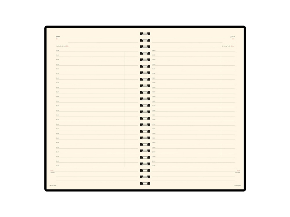 Ежедневник Milano от бренда Bruno Visconti - это сочетание элегантности и практичности. Закругленная обложка из классического переплетного материала - хорошая альтернатива натуральной коже. Форма обложки подчеркнута аккуратной строчкой по краю. Внутренний блок формата А5 на современном креплении – полускрытом гребне – содержит 272 страниц. Для них подобрана первосортная бежевая бумага повышенной плотности (70 г/кв м). Помимо рабочих страниц в структуру блока включены телефонная книга и справочный раздел. На страницах для планирования есть удобная почасовая разбивка.
