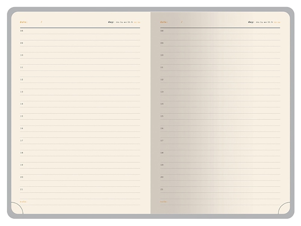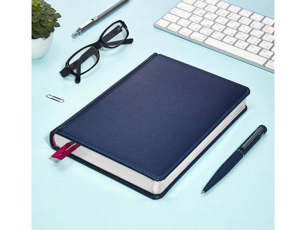 - твердая обложка из высококачественной экокожи с декоративной нитью по периметру в тон ежедневника;