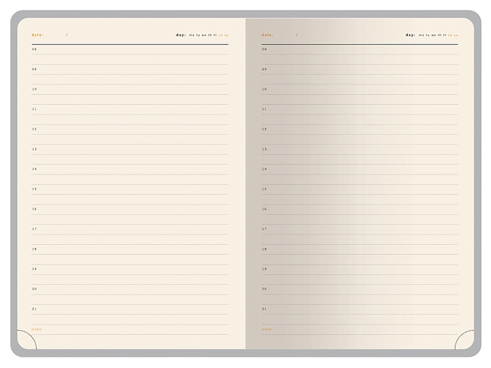 - твердая обложка из высококачественной экокожи с декоративной нитью по периметру в тон ежедневника;