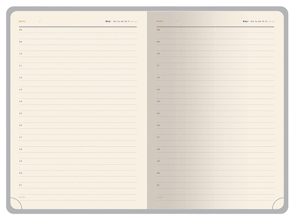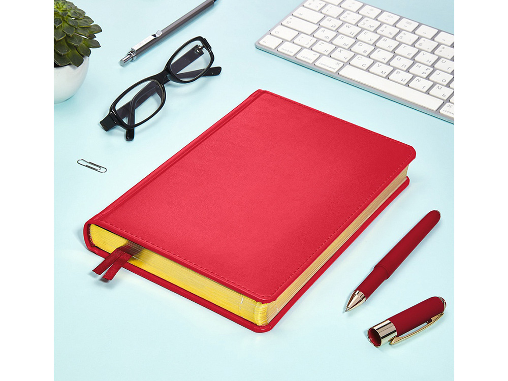 - твердая обложка из высококачественной экокожи с декоративной нитью по периметру в тон ежедневника;