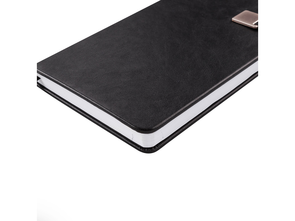 Твердую обложку из высококачественной искусственной кожи дополняет металлический хлястик на магните. Ляссе в цвет обложки позволяет быстро найти нужную страницу. Блок в 272 страницы произведен из бежевой бумаги плотностью 70 г/кв.м и имеет раздел справочной информации на 19 страницах. Для удобства навигации все углы блока перфорированы, имеют скруглённую форму.