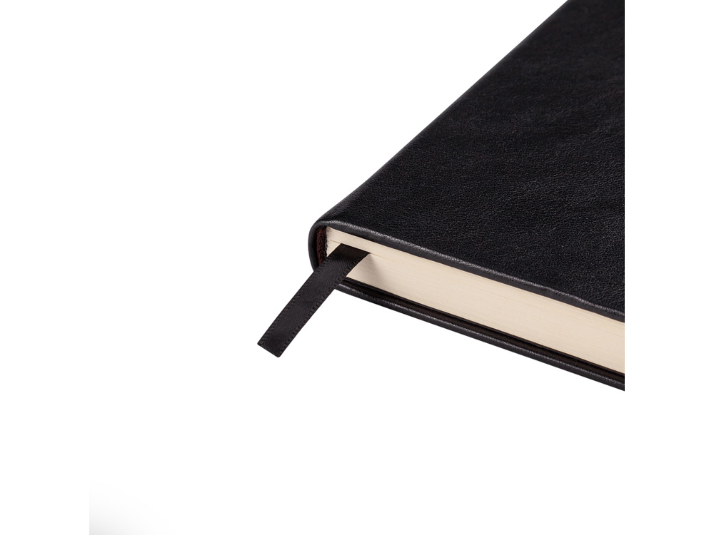 Твердую обложку из высококачественной искусственной кожи дополняет металлический хлястик на магните. Ляссе в цвет обложки позволяет быстро найти нужную страницу. Блок в 272 страницы произведен из бежевой бумаги плотностью 70 г/кв.м и имеет раздел справочной информации на 19 страницах. Для удобства навигации все углы блока перфорированы, имеют скруглённую форму. -