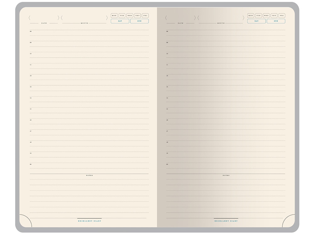 Твердую обложку из высококачественной искусственной кожи дополняет металлический хлястик на магните. Ляссе в цвет обложки позволяет быстро найти нужную страницу. Блок в 272 страницы произведен из бежевой бумаги плотностью 70 г/кв.м и имеет раздел справочной информации на 19 страницах. Для удобства навигации все углы блока перфорированы, имеют скруглённую форму.