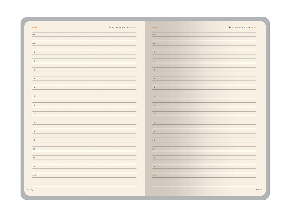 В ежедневнике Prestige есть полезная справочная информация на русском языке, а также страницы для записи идей, мыслей и составления рабочих планов. Дни недели указаны сокращенно на английском языке. Для изготовления страниц используется качественный бежевый офсет повышенной плотности (70 г/кв м), который производится в Японии и подходит для всех видов чернил. Разметка блока с указанием времени позволяет планировать дела с точностью до 1 часа.
