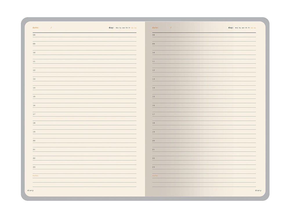 В ежедневнике Prestige есть полезная справочная информация на русском языке, а также страницы для записи идей, мыслей и составления рабочих планов. Дни недели указаны сокращенно на английском языке. Для изготовления страниц используется качественный бежевый офсет повышенной плотности (70 г/кв м), который производится в Японии и подходит для всех видов чернил. Разметка блока с указанием времени позволяет планировать дела с точностью до 1 часа.