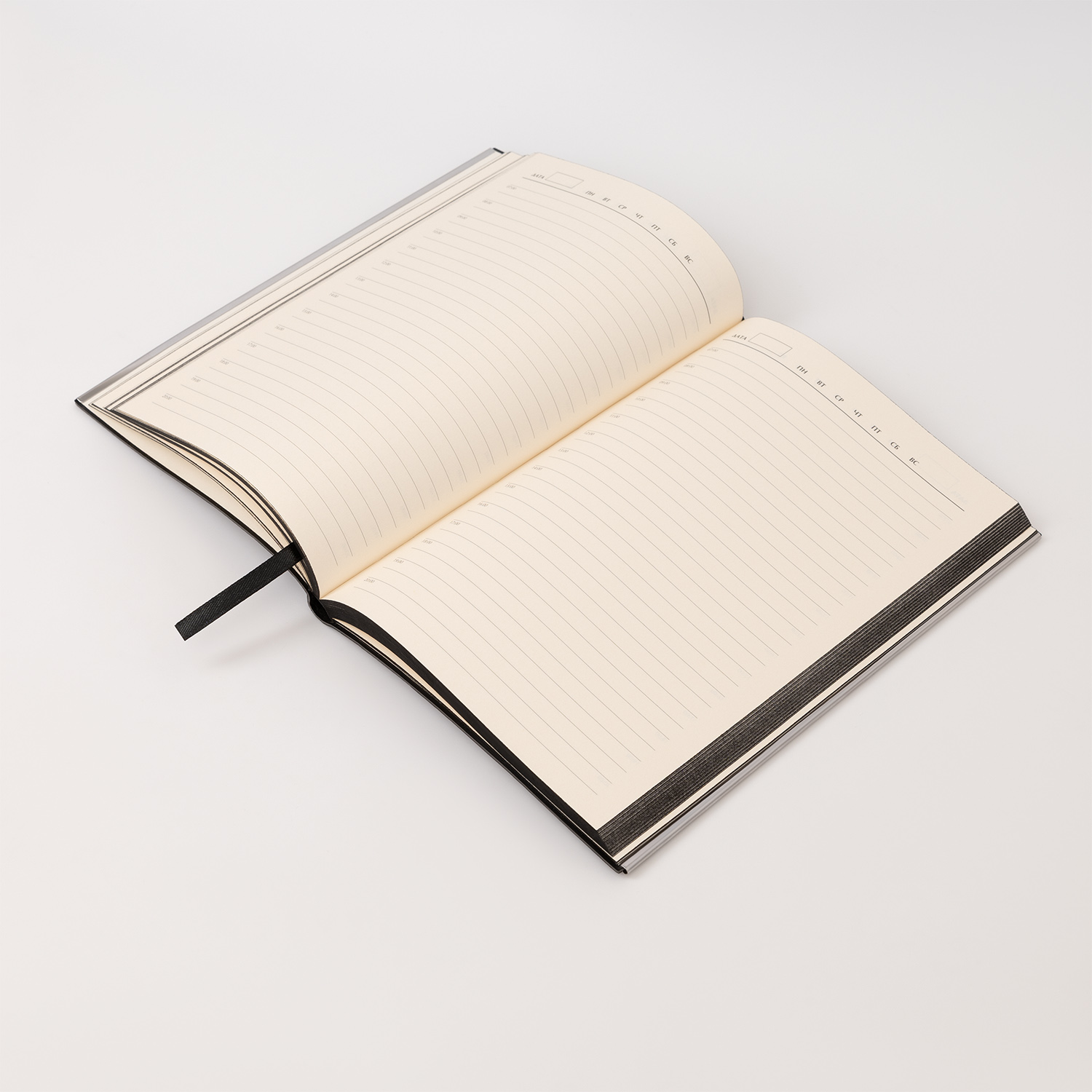 Кремовые форзац, нахзац и срез создают гармоничное сочетание с гладкими, шелковистыми страницами того же нежного оттенка. Удобное атласное ляссе поможет вам быстро найти нужную страницу. Этот ежедневник — не просто инструмент для планирования, а изысканный аксессуар, который подчеркнет ваш безупречный вкус.