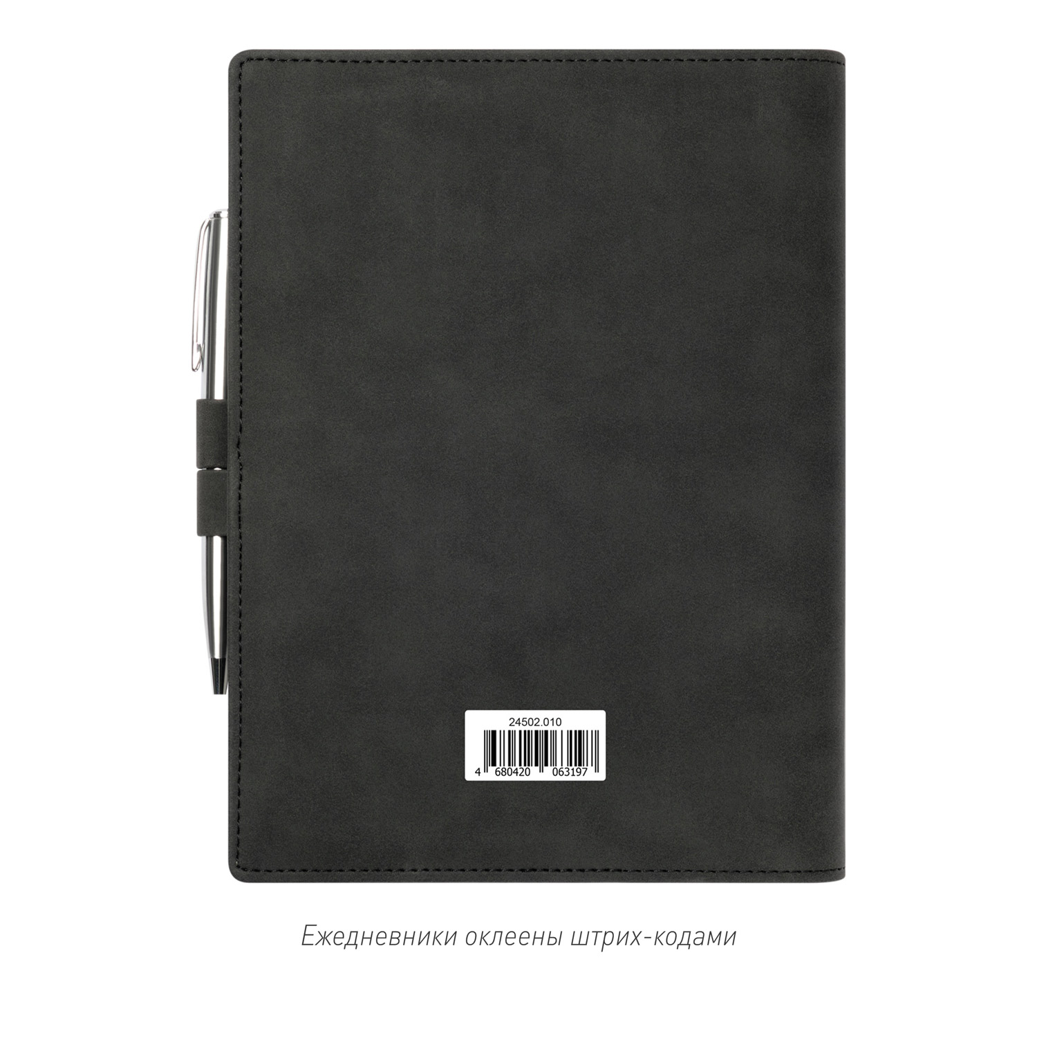 Застежка составлена из двух петель для ручки из материала и цвета обложки, расположенных на ее противоположных сторонах.