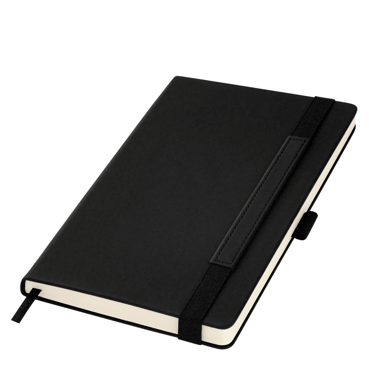 Вертикальная резинка-фиксатор с вставкой из ПУ-материала обложки и петелька под ручку, в цвет обложки