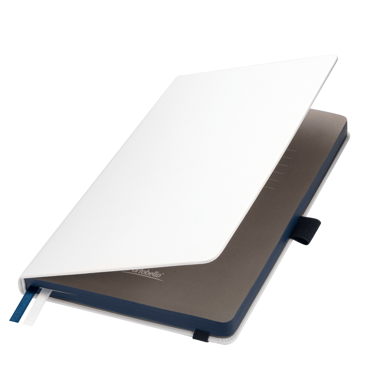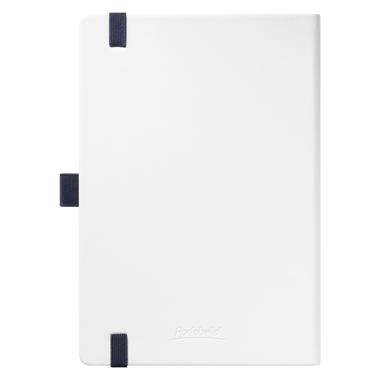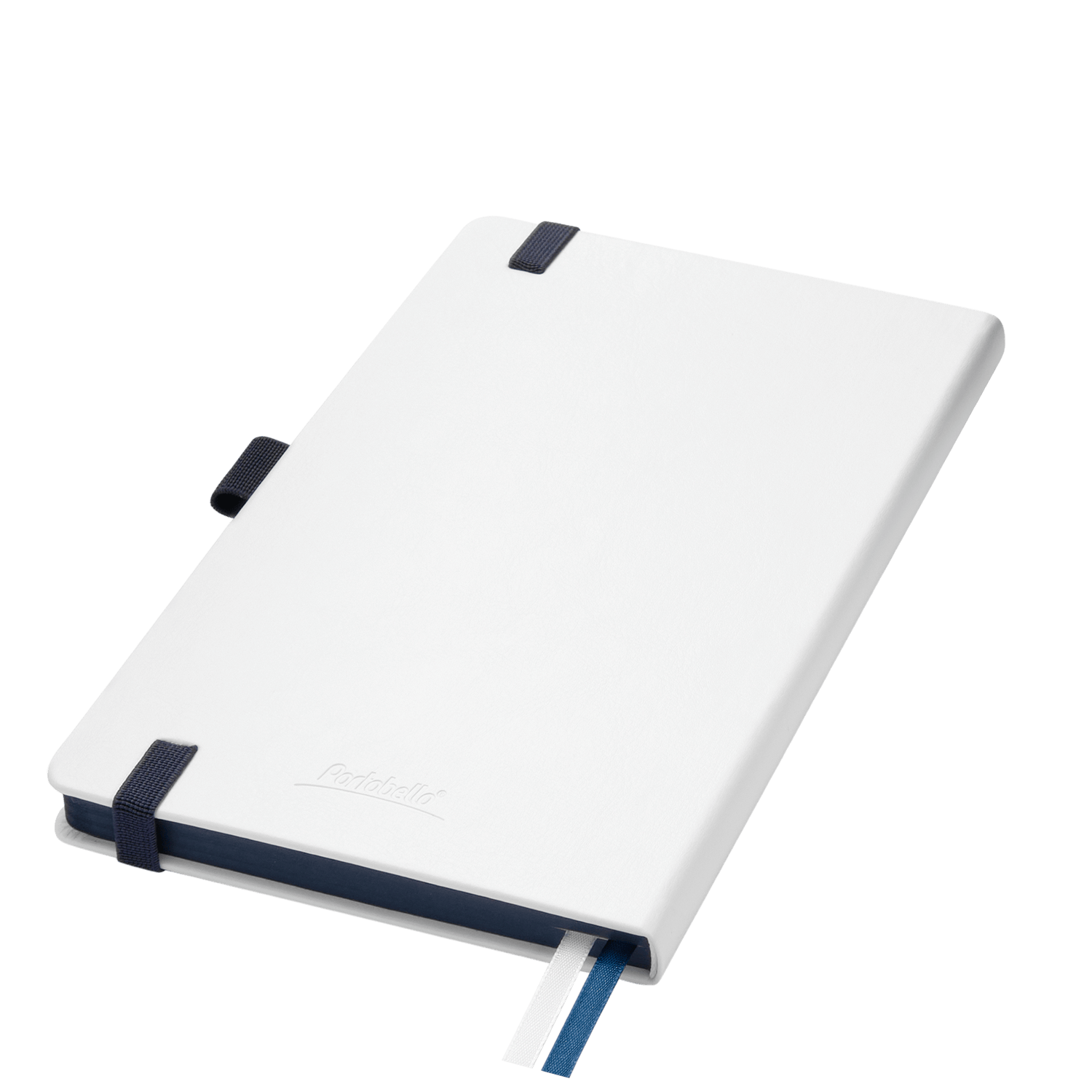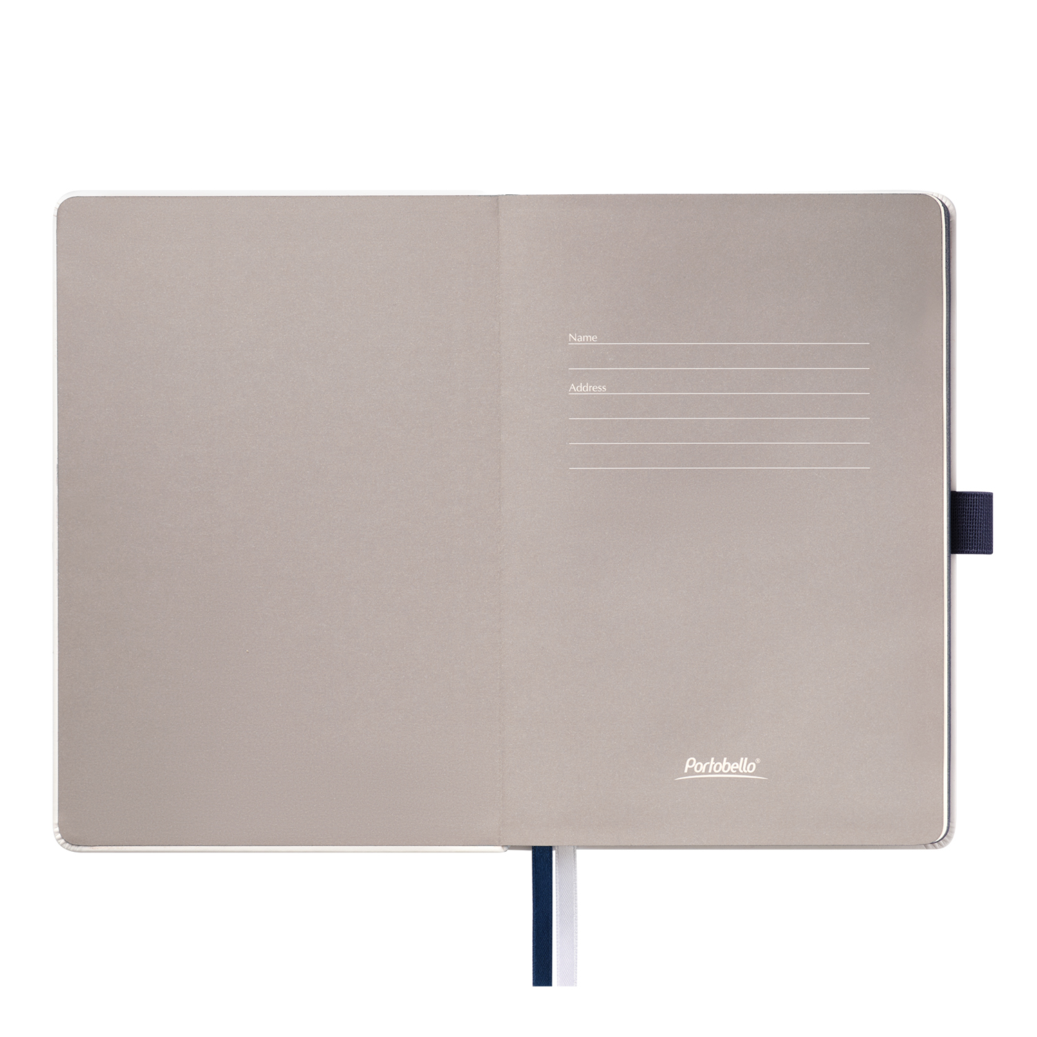 Недатированный ежедневник выполнен в жесткой обложке из искусственной кожи со скругленными уголками. Переплетный материал гладкий, с легкой естественной паутинкой морщин, имеет полуглянцевый блеск. Цвет – чистый белый. Серые матовые форзац и нахзац, а также синий срез блока создают оригинальный динамичный цветовой ансамбль и подчеркивают белизну обложки. Страницы светло-кремового цвета, из гладкого офсета, слегка шелковистые, со скругленными уголками. Добавляют изделию мягкую комфортную теплоту. Двойное атласное ляссе составлено из синей и белой лент. Каждая шириной 6 мм, имеет легкий блеск. Вертикальная фиксирующая резинка прочная, надежная и удобная, в тон срезу. Есть петелька для ручки в тон резинки. Карман на заднем форзаце.