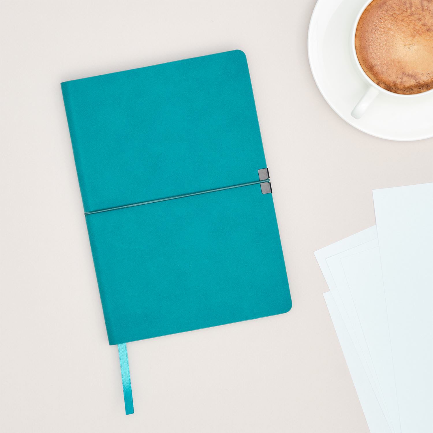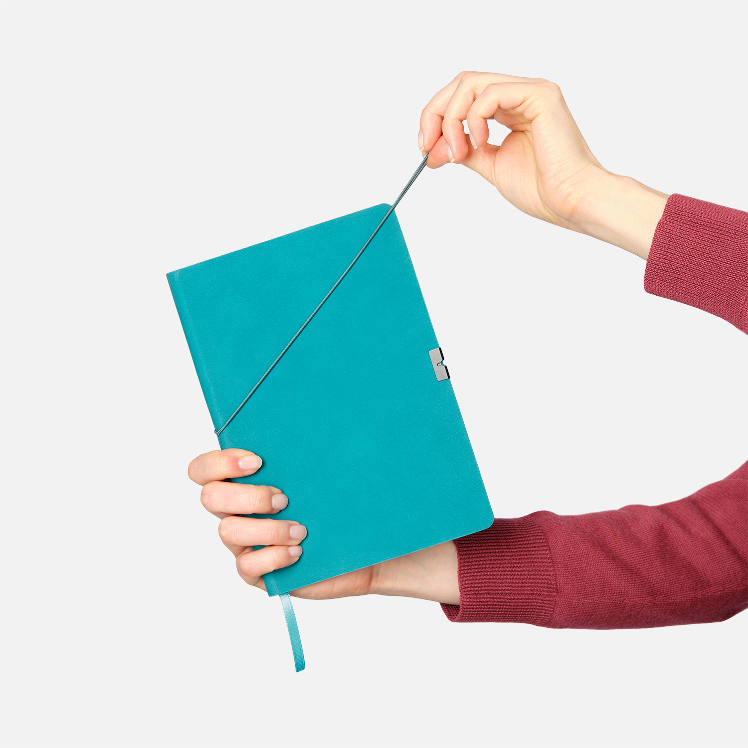 Резинка в тон обложки, горизонтальная, с металлическим фиксатором на обеих сторонах обложки