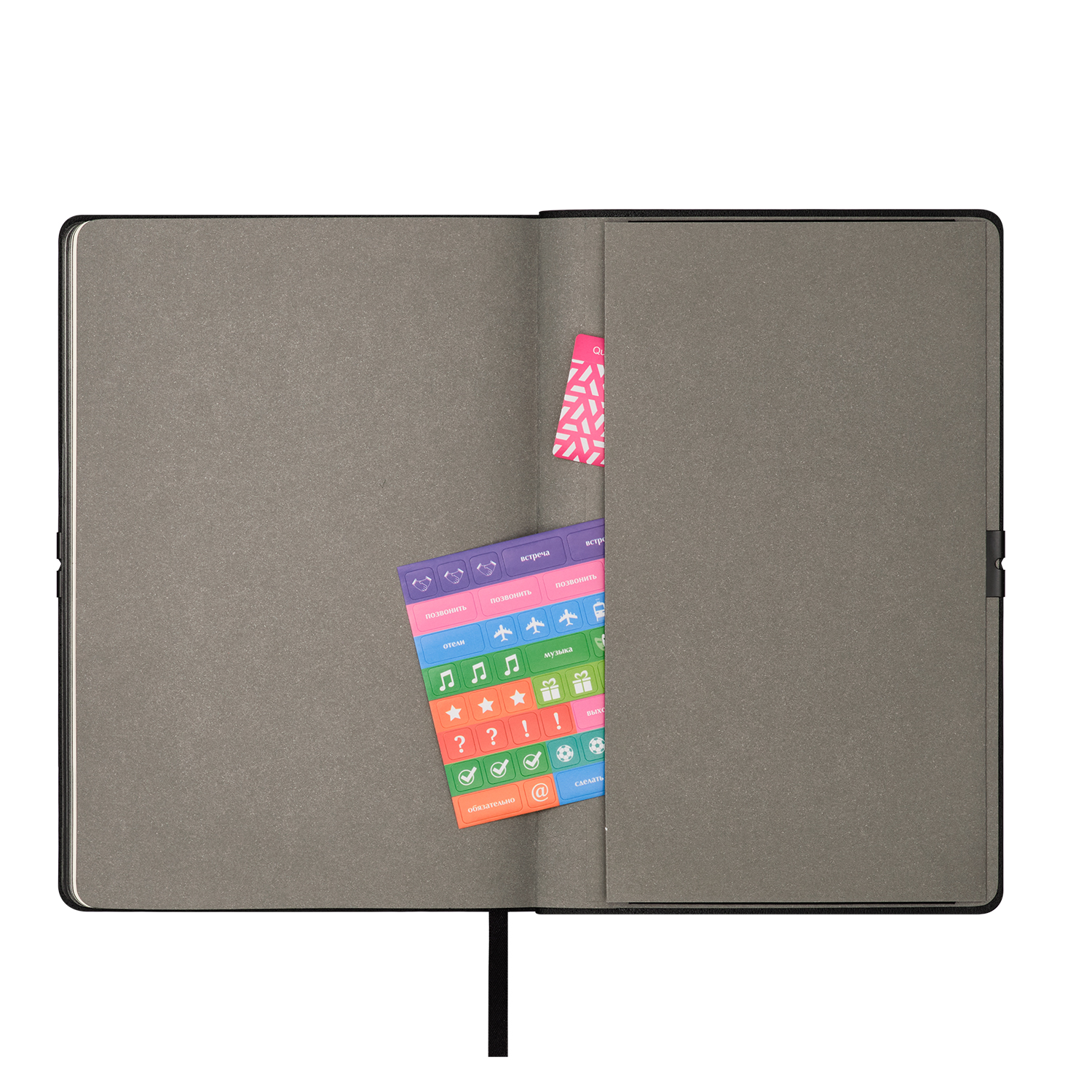 Горизонтальная резинка, фиксирующая обложку, дополнена металлическими элементами, которые не только защищают обложку от повреждений, но и служат стильным акцентом. Матовый срез в тон обложки и светло-кремовые страницы из гладкого, слегка шелковистого офсета подчеркивают изысканность дизайна. Атласное ляссе гармонично завершает образ этого элегантного ежедневника.