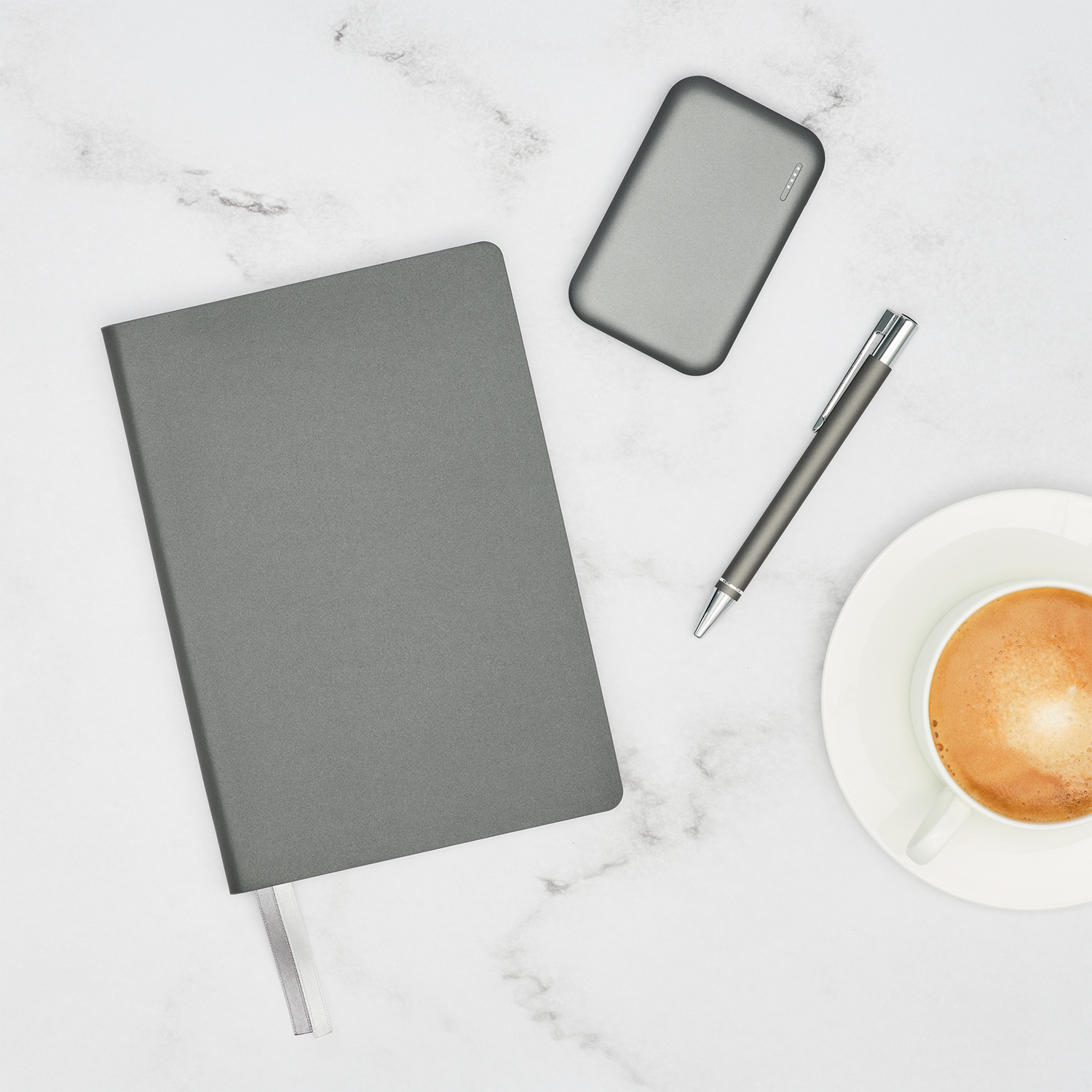Форзац и нахзац, выполненные в тон обложки, создают гармоничный и целостный образ. Гладкие, шелковистые страницы светло-кремового оттенка со скругленными уголками дарят ощущение тепла и уюта, приглашая вас окунуться в мир вдохновения. Контрастный матовый серый срез добавляет ежедневнику нотку современности.