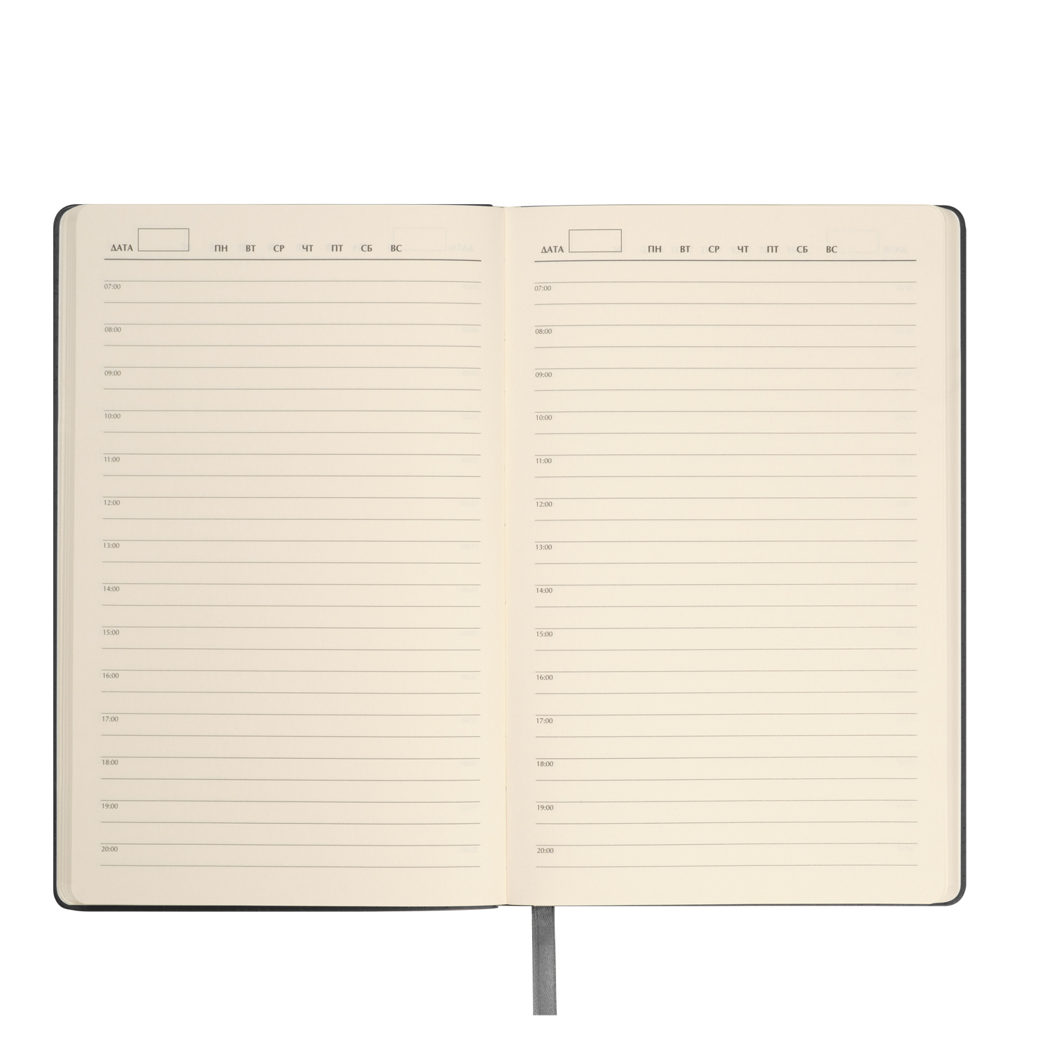 Кремовые форзацы и гладкие шелковистые страницы из офсета со скругленными уголками обеспечат максимальный комфорт при письме. Элегантное атласное ляссе поможет быстро найти нужную страницу. Этот ежедневник — воплощение изысканной простоты и практичности.