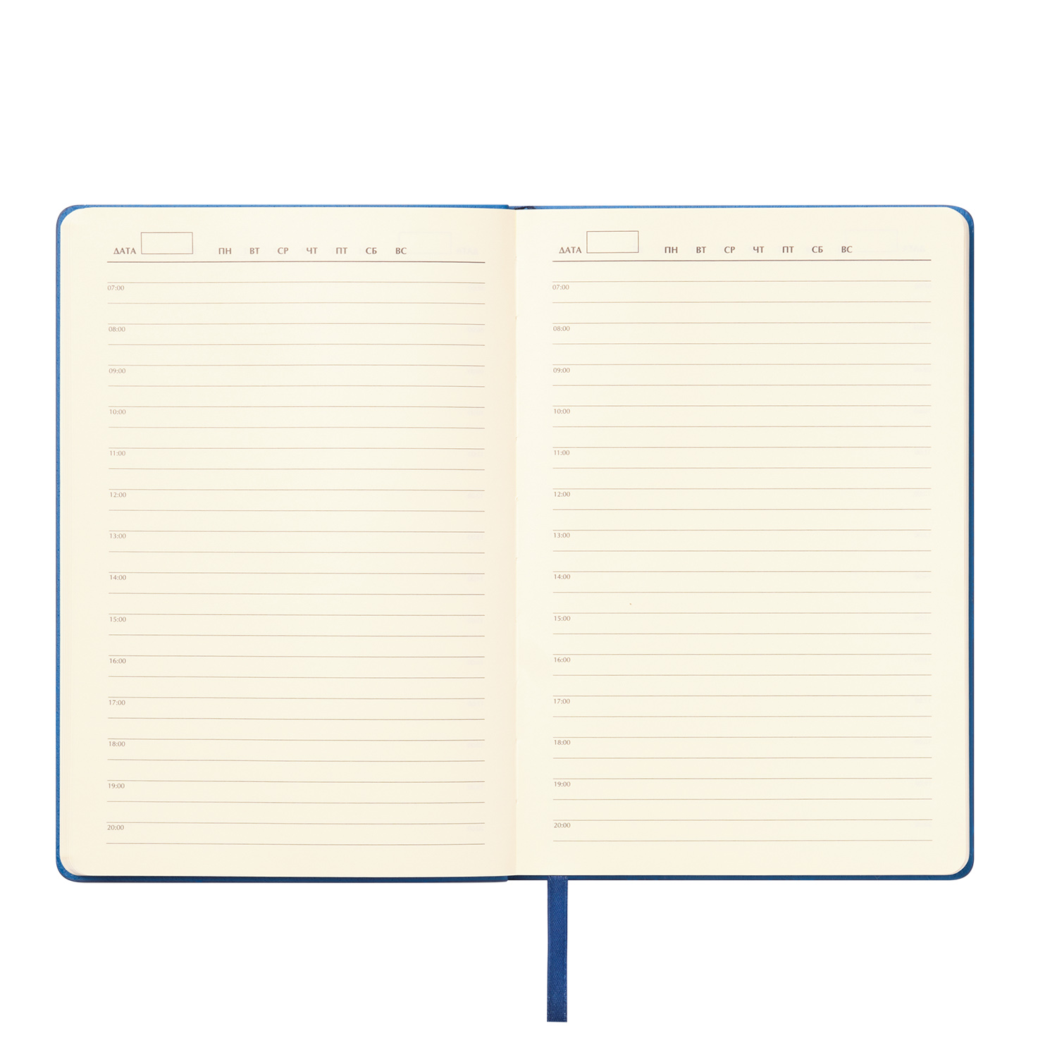 Кремовые форзац, нахзац и срез создают гармоничное сочетание с гладкими, шелковистыми страницами того же нежного оттенка. Удобное атласное ляссе поможет вам быстро найти нужную страницу. Этот ежедневник — не просто инструмент для планирования, а изысканный аксессуар, который подчеркнет ваш безупречный вкус.