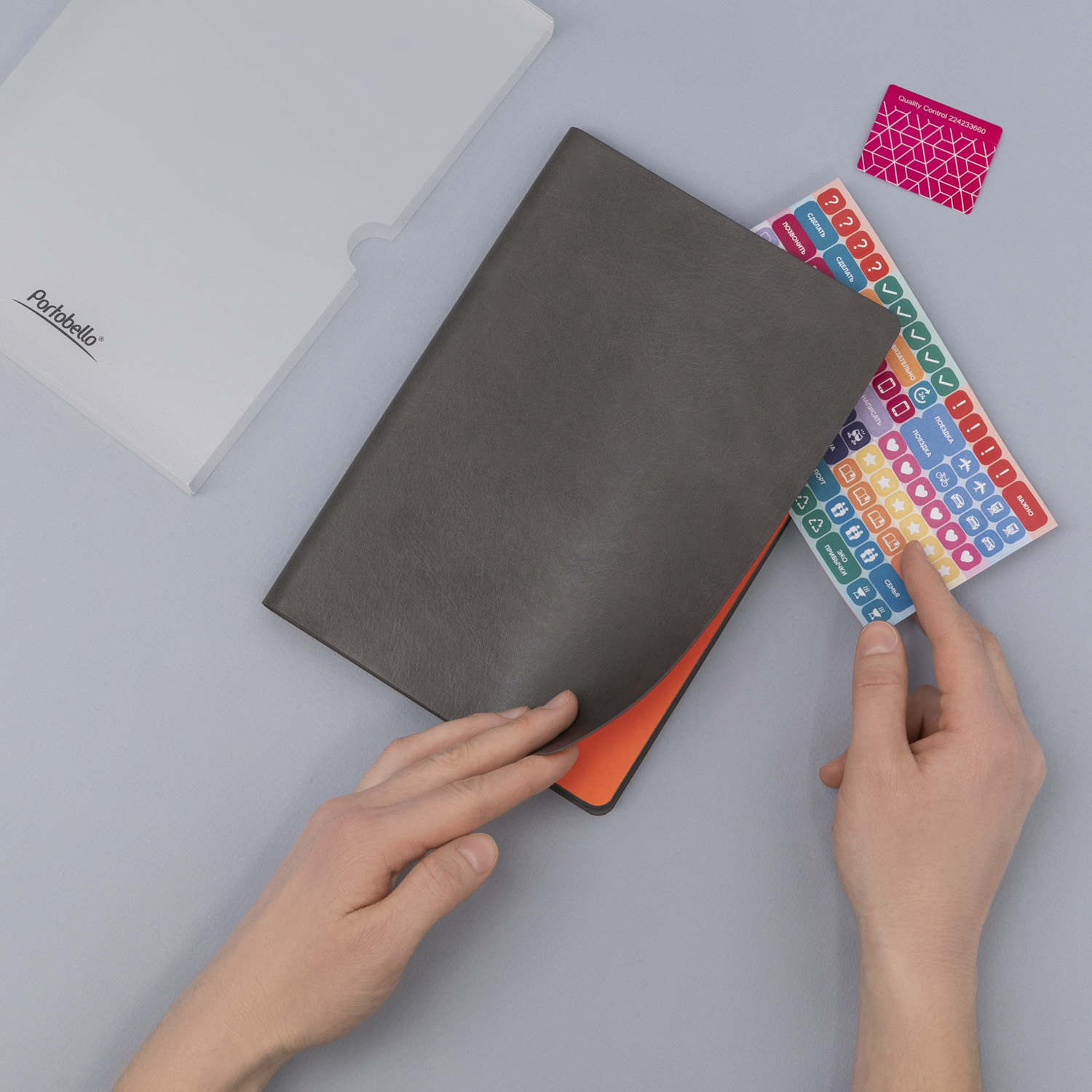 Яркий и одновременно лаконичный недатированный ежедневник Voyage воплощает современный дизайн и изысканный стиль. Гибкая обложка из искусственной кожи с полуглянцевым покрытием и скругленными уголками привлекает внимание своей необычной фактурой – едва заметной сеткой мелких морщинок и прожилок, напоминающих натуральную кожу. Спокойный, естественный цвет с неоднородным мраморным рисунком и плавными переходами от темного к светлому оттенку добавляет обложке глубину и изысканность.