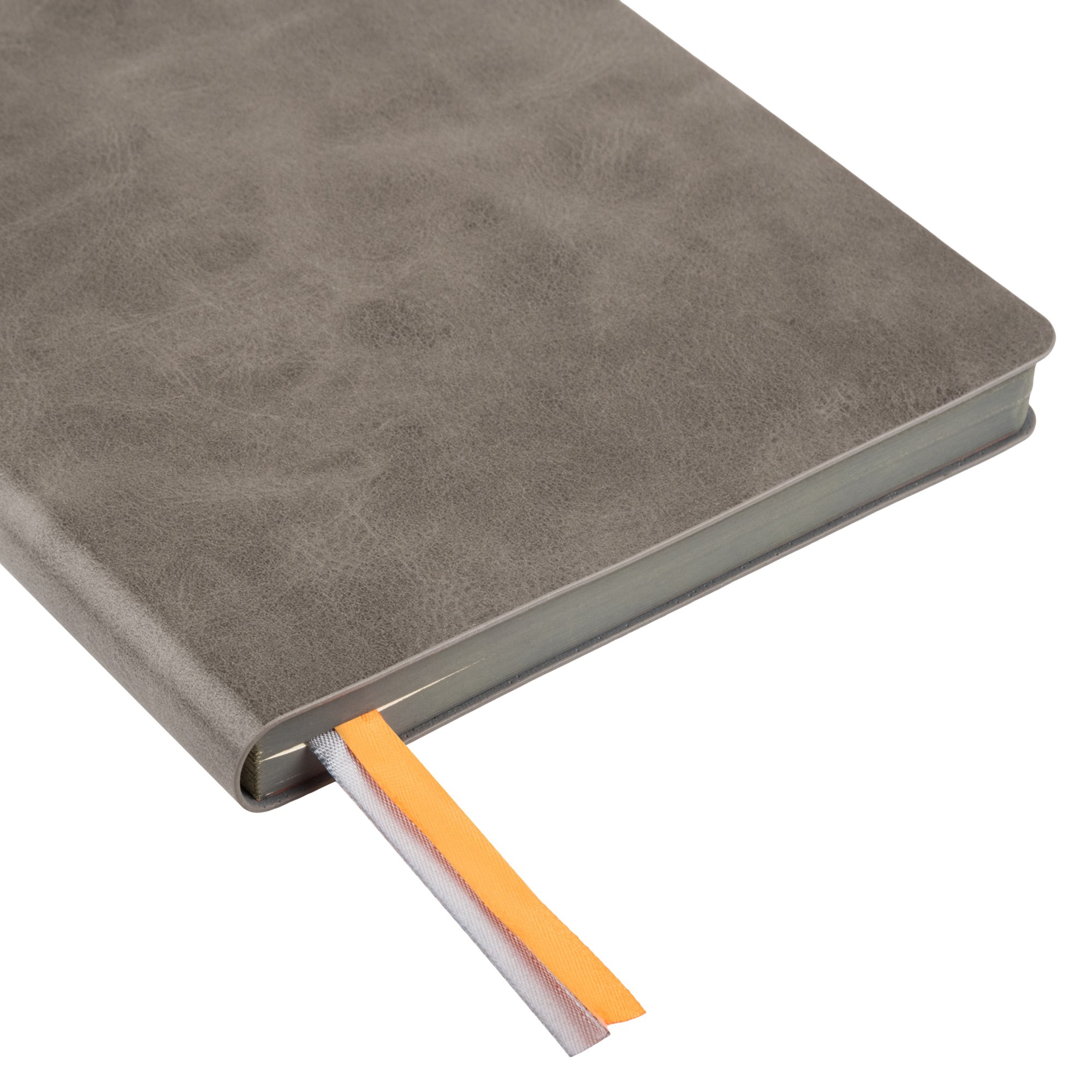 Матовые форзац и нахзац служат элегантным обрамлением для теплых кремовых страниц из гладкого шелковистого офсета со скругленными уголками. Матовый срез гармонично дополняет общую композицию. Удобное двойное атласное ляссе, состоящее из серой ленты и ленты в цвет обложки с легким блеском, поможет вам быстро найти нужную страницу.