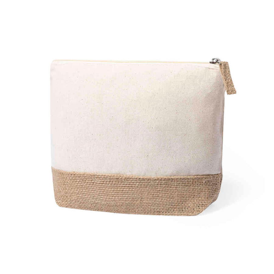 Косметичка из ламинированного джута и натурального хлопка. С застежкой-молнией и джутовым пулером. -