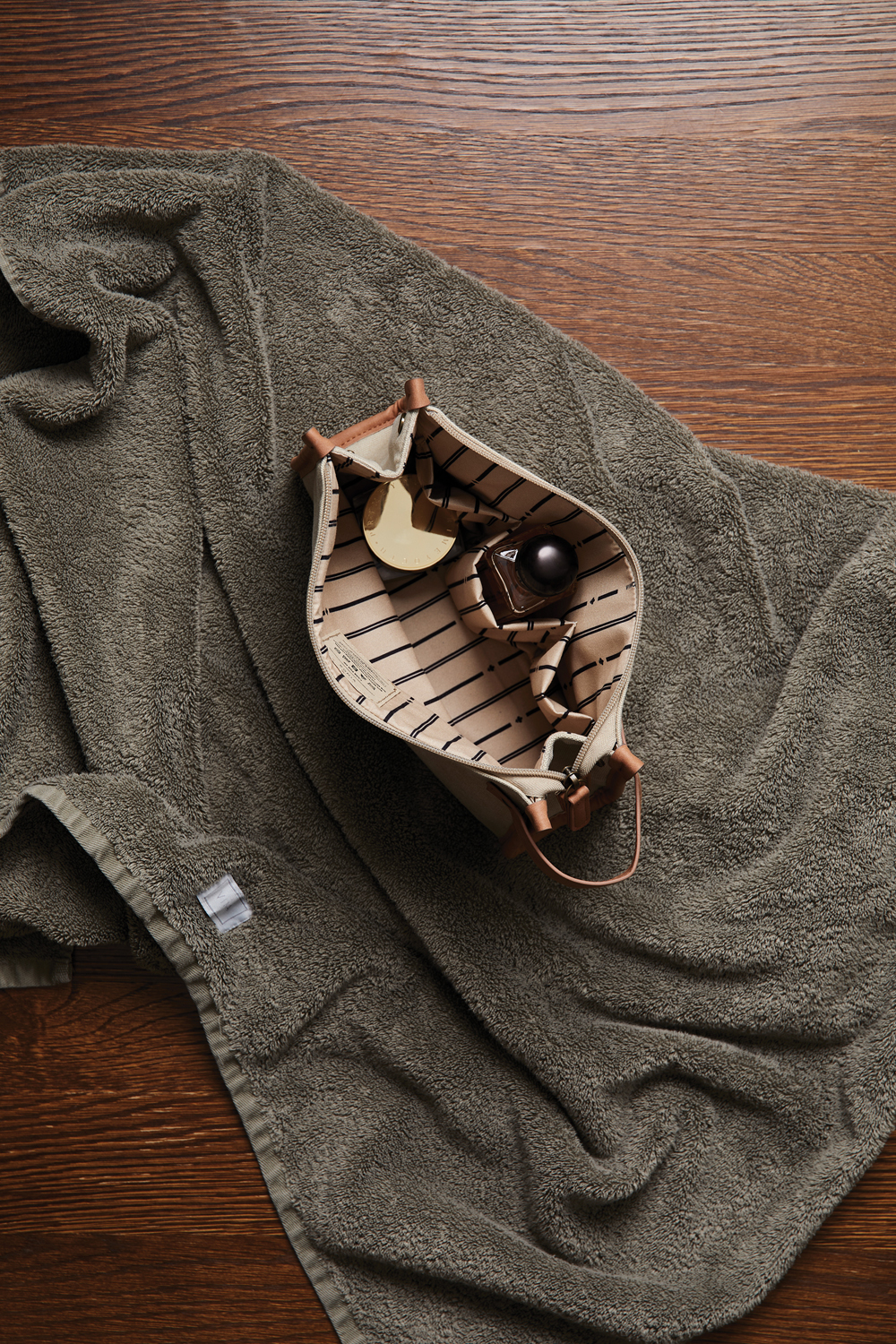 Простая, но от этого не менее эффектная косметичка из серии Bosler станет незаменимым спутником в путешествиях, командировках и поездках по городу. Это экологичный выбор для тех, кто любит долговечные качественные вещи. Косметичка изготовлена из переработанного канваса: на 40% он состоит из переработанного полиэстера, а на 60% — из переработанного хлопка. Детали и фурнитура сделаны из искусственной кожи и латуни, в том числе — удобная петля, облегчающая переноску.