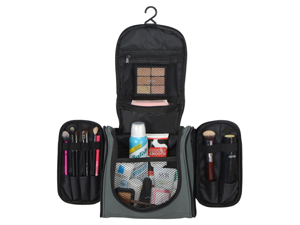• Оснащен внутренними карманами и отделениями, позволяющими организованно распределить мелкие аксессуары, включая зубную пасту и щетку, бритвенный станок, расческу, лекарства и другие, необходимые в дороге мелочи