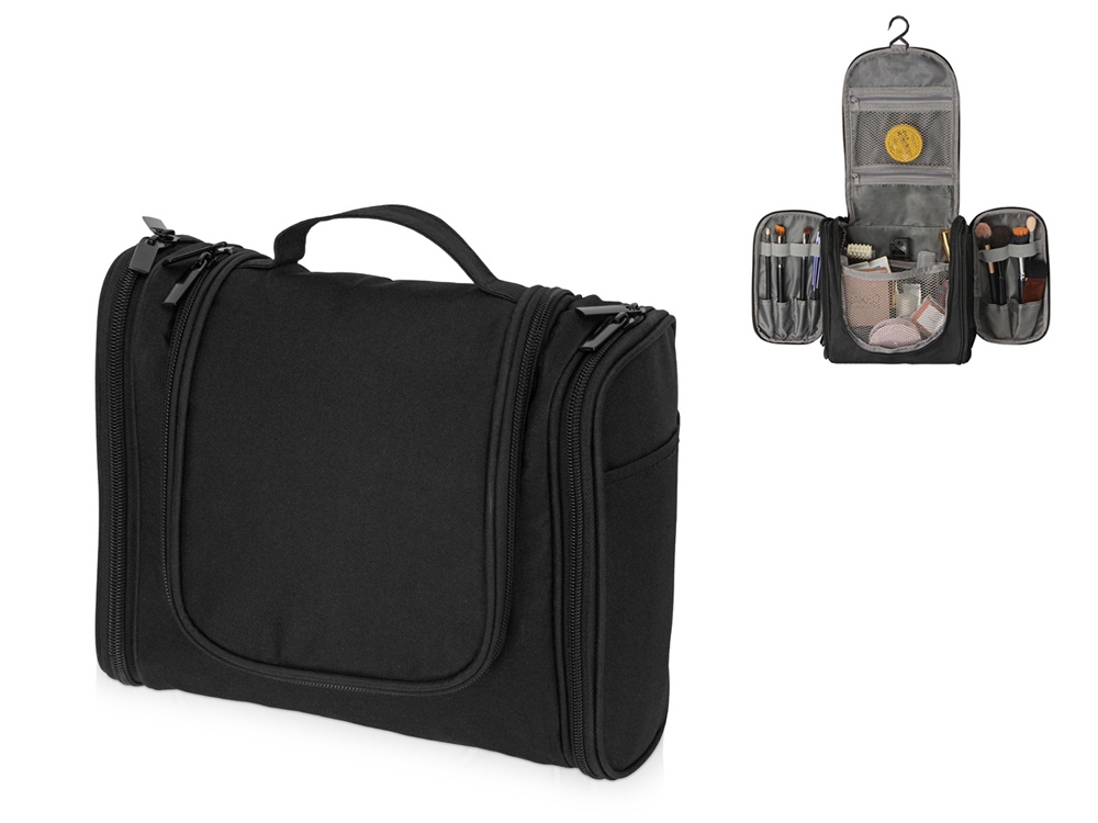 • Снабжен ручкой для удобства переноски и крючком, позволяющим подвесить несессер в ванной комнате гостиничного номера или любом другом месте