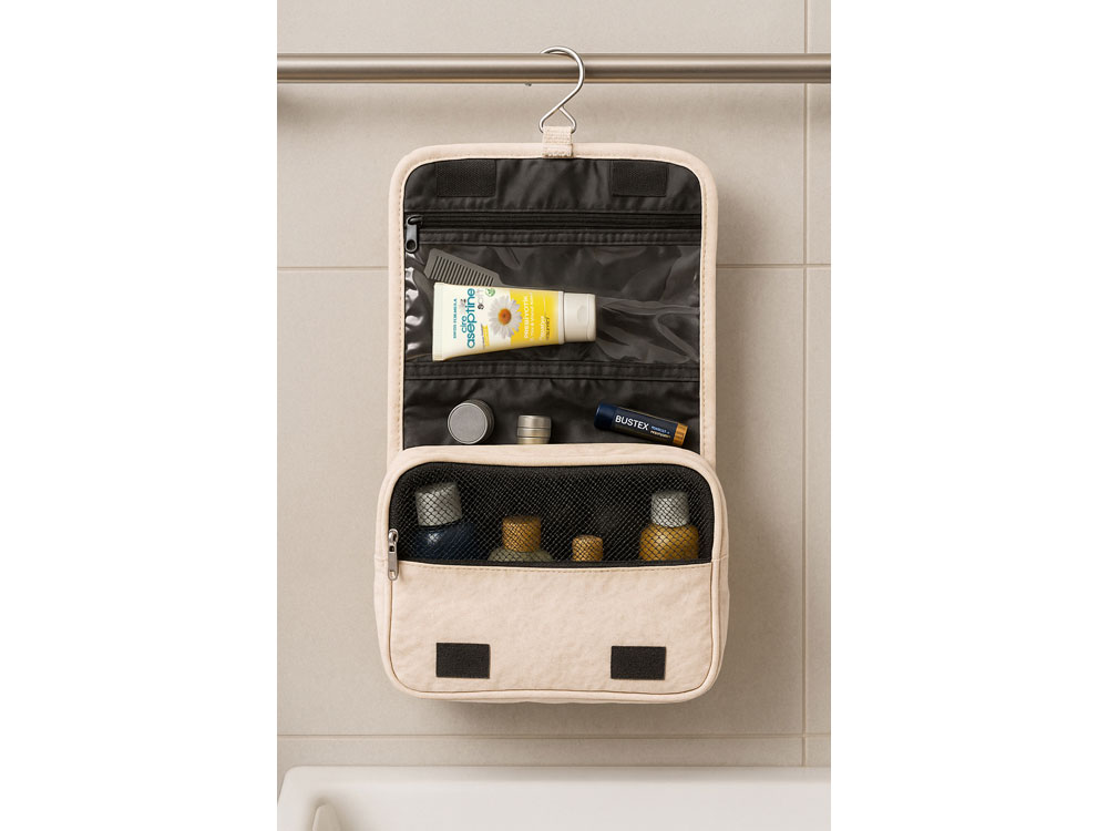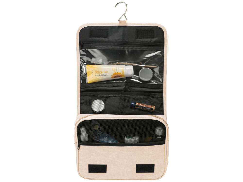 Несессер Planar оснащен металлическим крючком для подвешивания, который в сложенном виде убирается внутрь и не будет вам мешать. Для переноски несессер имеет ручку снаружи, а еще вы найдете плоский вместительный карман на его задней стороне. Клапан несессера закрывается на липучки и имеет три кармана — большой на молнии из прозрачного материала, который легко моется, даже в случае, если флакон изнутри разгерметизировался, и два из сетки, куда можно положить необходимые мелочи и которые удобнее использовать в висящем виде.