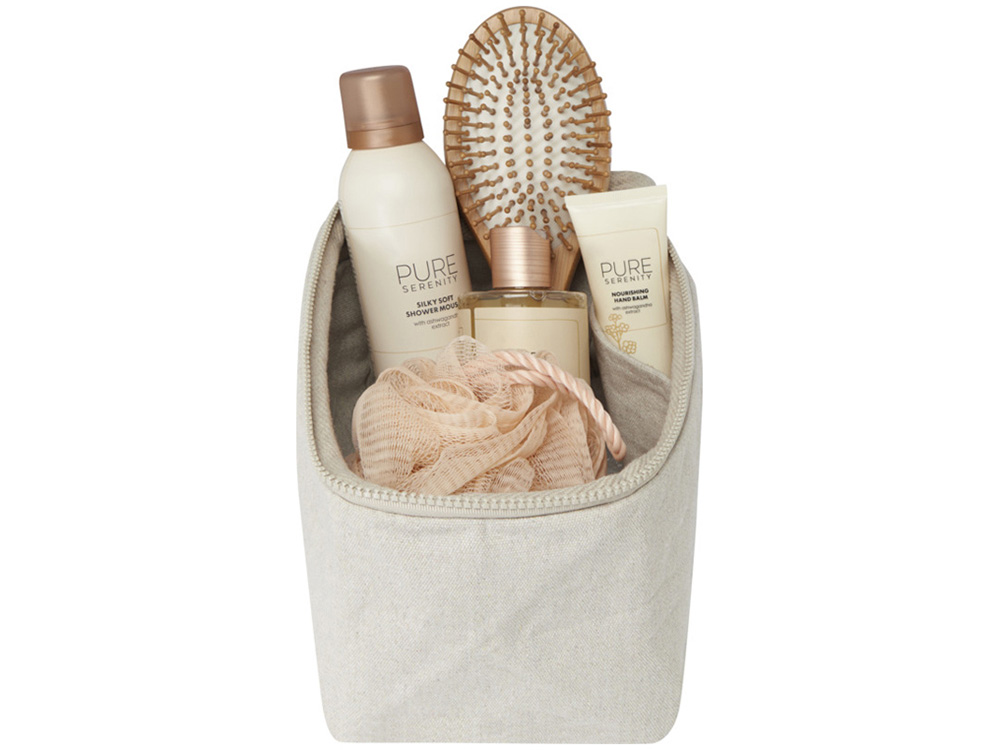 Органайзер для туалетных принадлежностей, изготовленный из переработанного хлопка и переработанного полиэстера плотностью 500 г/м², с просторным основным отделением с надежной застежкой-молнией и несколькими внутренними накладными карманами, что делает его идеальным для хранения необходимых туалетных принадлежностей. Его универсальная конструкция также хорошо подходит для помещения в него небольших предметов, таких как носки или зарядные устройства, позволяя аккуратно уложить багаж. Сумка изготовлена из переработанных волокон Cyclo®, в которых используются предварительно отсортированные отходы, определяющие цвет пряжи. Эти волокна не только снижают потребность в первичных ресурсах, но и демонстрируют приверженность циклическому образу жизни, воплощая суть сокращения отходов и продвижения системы с замкнутым контуром. Каждая сумка также поставляется с индикатором Aware™. Эта инновационная функция позволяет пользователям отслеживать происхождение и путь своего товара с помощью QR-кода, повышая прозрачность цепочки поставок и способствуя более прочной связи между продуктом и процессом его производства. 70% переработанный хлопок, 30% переработанный Полиэстер, 500 г/м2.