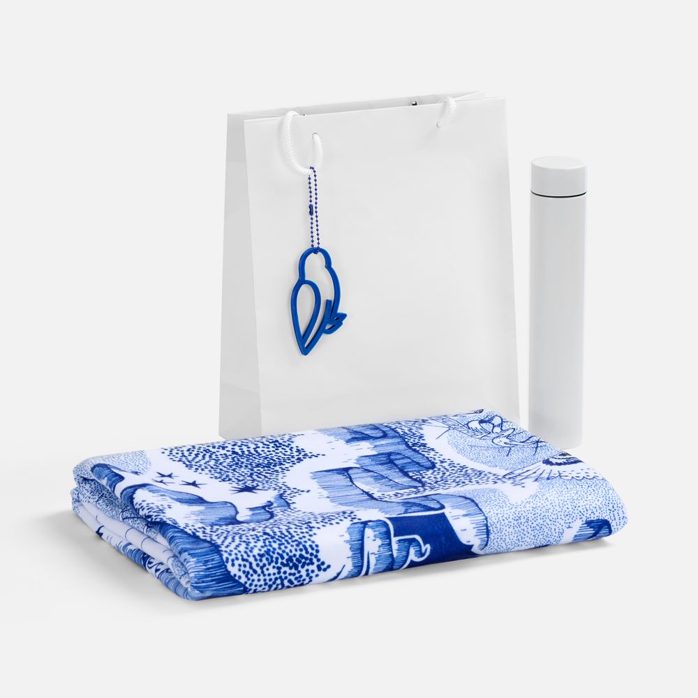 Центральное место в наборе занимает плед «Чудеса прилетели» — настоящее полотно‑повествование, словно сотканное из северных сказок. Это пожелания и заветы от мудрых сов на будущий год, к которым можно возвращаться снова и снова.
