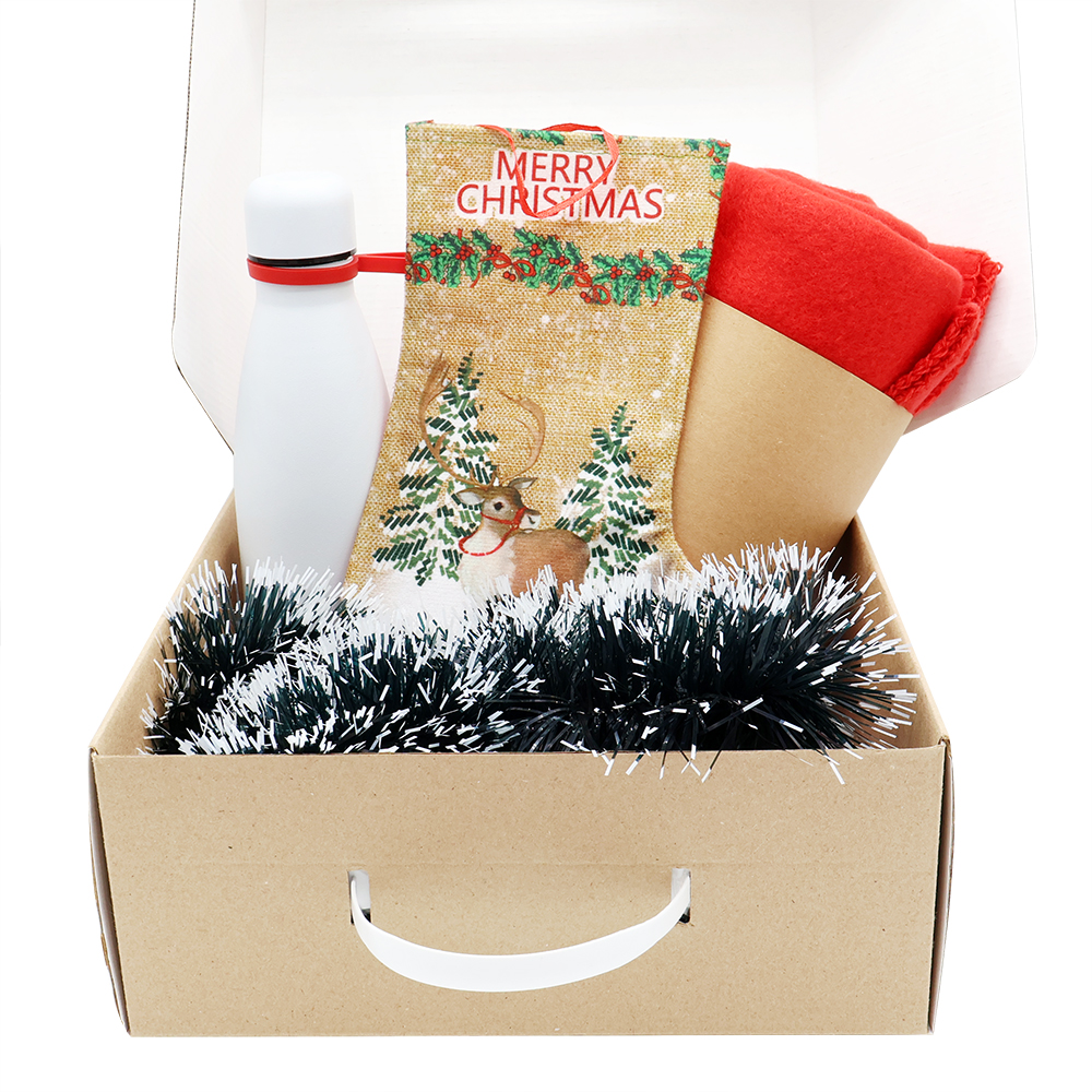 Этот подарочный набор подарит тепло и уют в холодное время года, создавая атмосферу праздника и комфорта. Идеальное сочетание практичности и праздничного настроения. Состав набора: Подарочная коробка из МГК (с ручкой) - артикул 53305 Плед PATIO, синий - артикул 16008.05 Вакуумная термобутылка Olivia, белый - артикул 5050.01, кольцо-держатель - красный; манжета - красный Новогодняя мишура - зелено-белый - артикул SYMTA-162079 Сапожок подарочный новогодний №5 — олень бежевый - артикул SYWZ-082008- Цвет: Красный