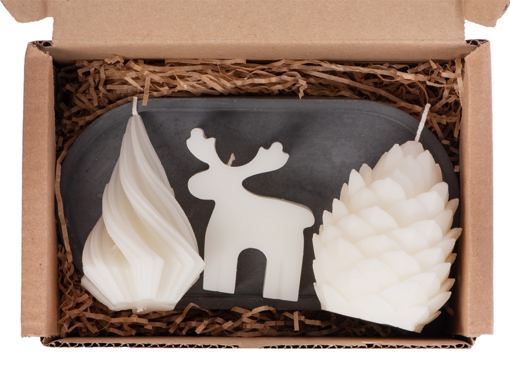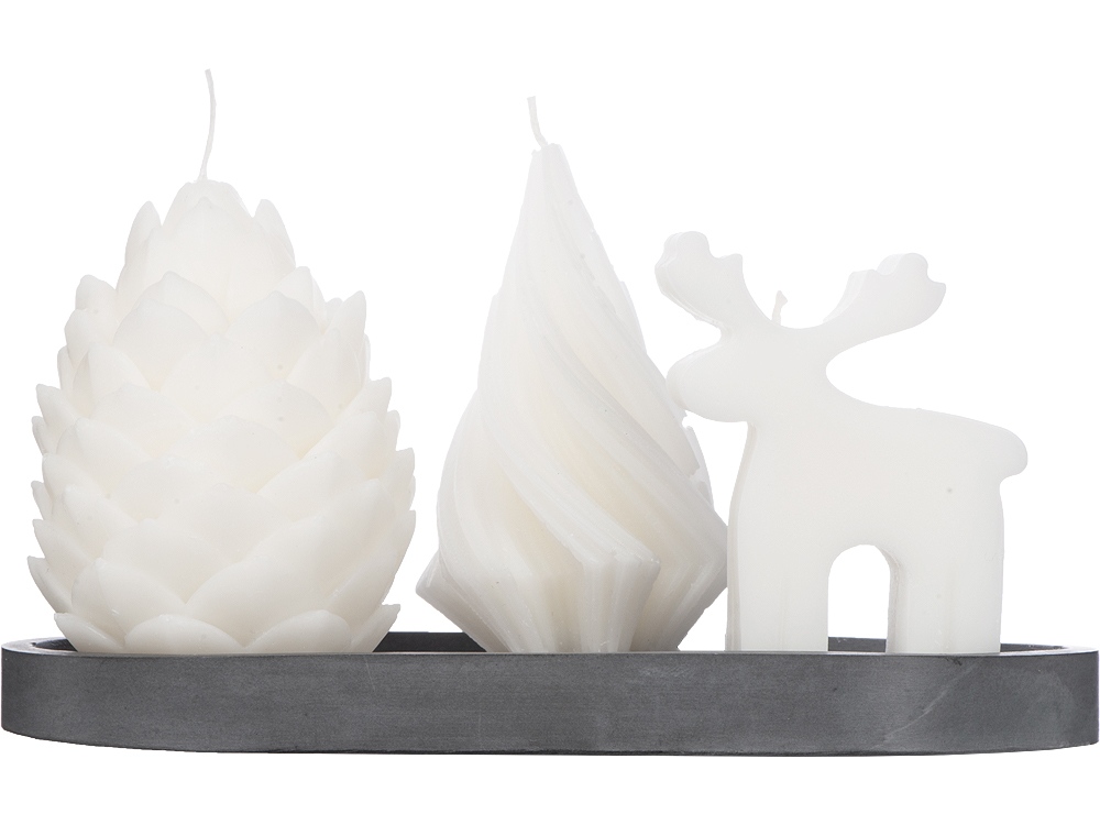 В набор входят три свечи на подставке — неотъемлемые символы Нового года и Рождества - это сосновая шишка, рождественский олень и, конечно же, елка, как главный символ нового года!
