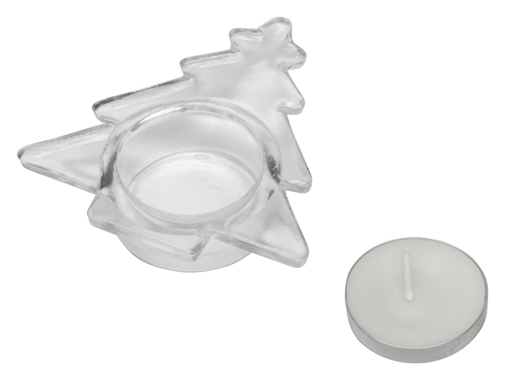 Подсвечник в виде новогодней елочки. Подходит для стандартных свечей - таблеток. Одна свеча в комплекте. -