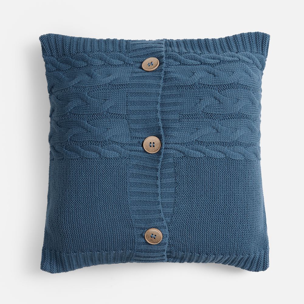 Вязаный чехол надевается на подушку из спанбонда, наполнитель — синтепон. Чехол крепится на три пуговицы.Отправляя запрос, укажите в поле «Примечание» формы заказа следующие данные.