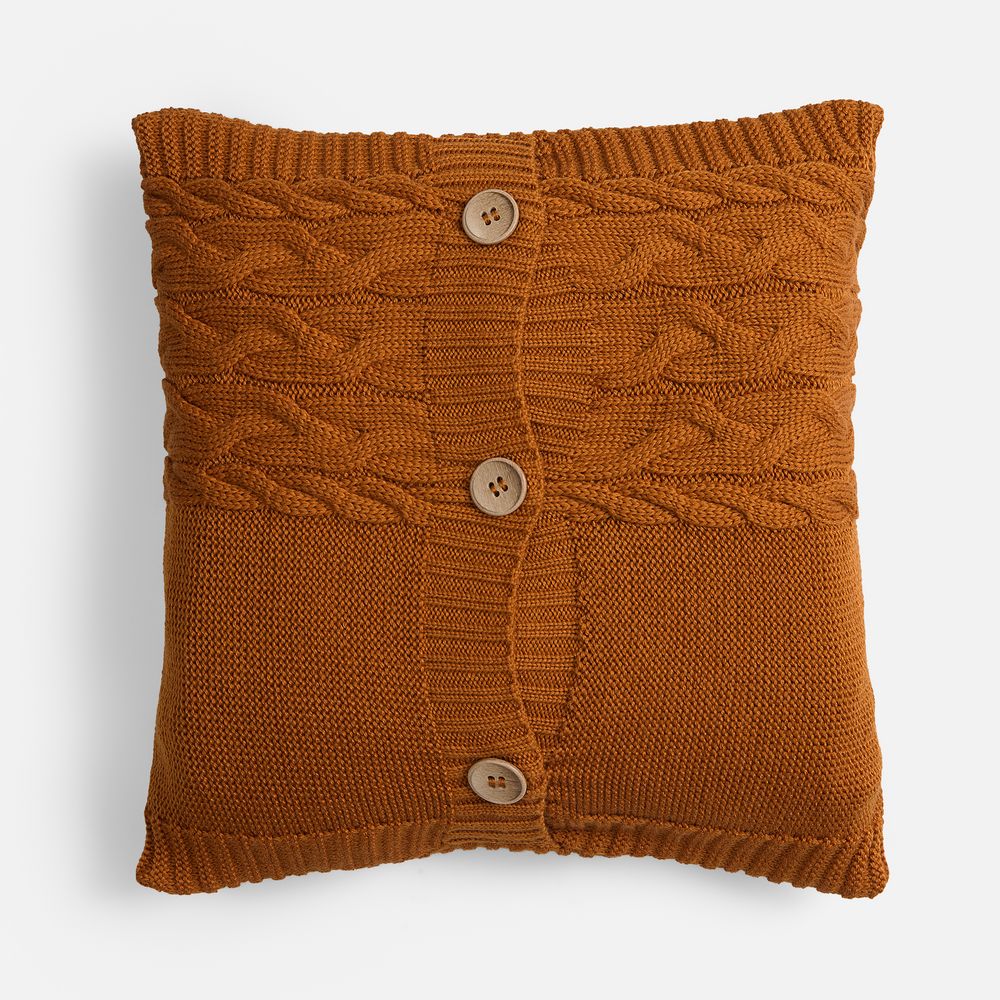 Вязаный чехол надевается на подушку из спанбонда, наполнитель — синтепон. Чехол крепится на три пуговицы.Отправляя запрос, укажите в поле «Примечание» формы заказа следующие данные.