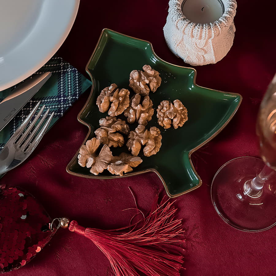 Неизменный атрибут новогоднего стола - тарелка для закусок в виде главного символа - новогодней елки!Золотой кант по краюНа тарелку можно красиво выложить разные виды сыра, мясных деликатесов или оливки.А можно просто сервировать ими стол индивидуально для каждого гостя.Индивидуальная коробка из крафтового картона -