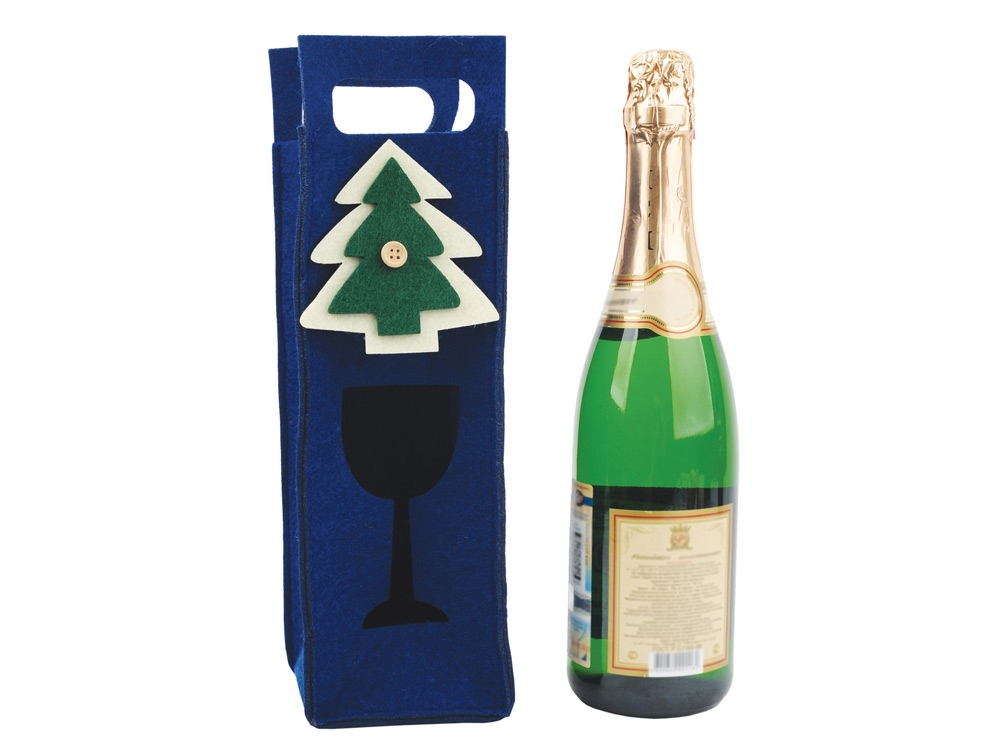 Без шампанского не обходится ни один новогодний стол, поэтому самым распространенным подарком сотрудникам фирмы является бутылка этого игристого напитка. Оформить такой подарок можно при помощи декоративного чехла с новогодней тематикой. Украшение в виде елки может крепиться в любое место чехла при помощи липучки. -