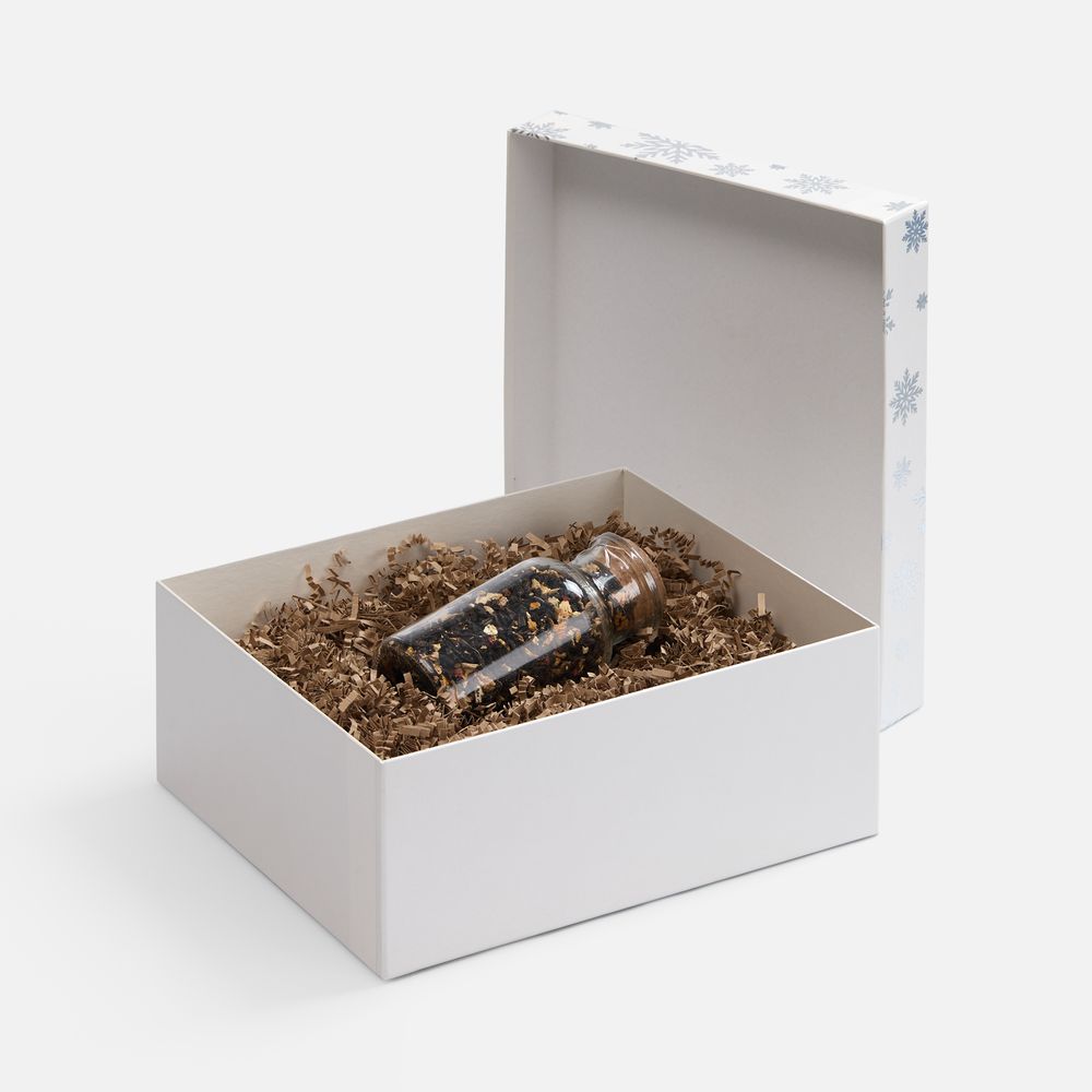 Коробка выполнена из переплетного картона толщиной 1,5 мм, кашированного бумагой TPG с тиснением серебристой фольгой. -