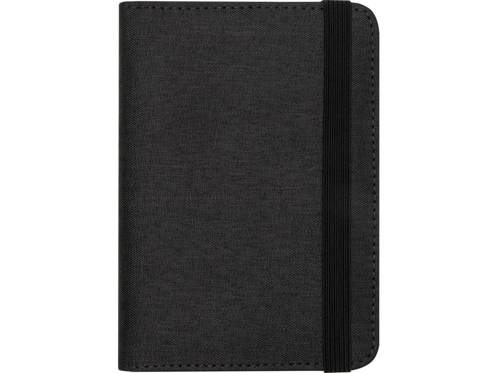 RFID-держатель для паспорта Ross изготовлен из переработанного полиэстера и идеально подходит для людей, постоянно находящихся в пути, благодаря специальным карманам для паспорта, билетов, кредитных карт и других предметов. Поставляется с эластичной застежкой, обеспечивающей сохранность содержимого. 300DGRS certified recycled polyester.