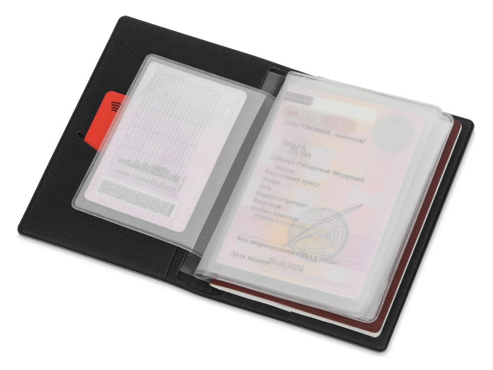 Внутренние вкладыши выполнены из пленки пвх и позволяют разместить: паспорт, свидетельство о регистрации тс, полис осаго, водительское удостоверение, также имеется кармашек для пластиковой карты. -
