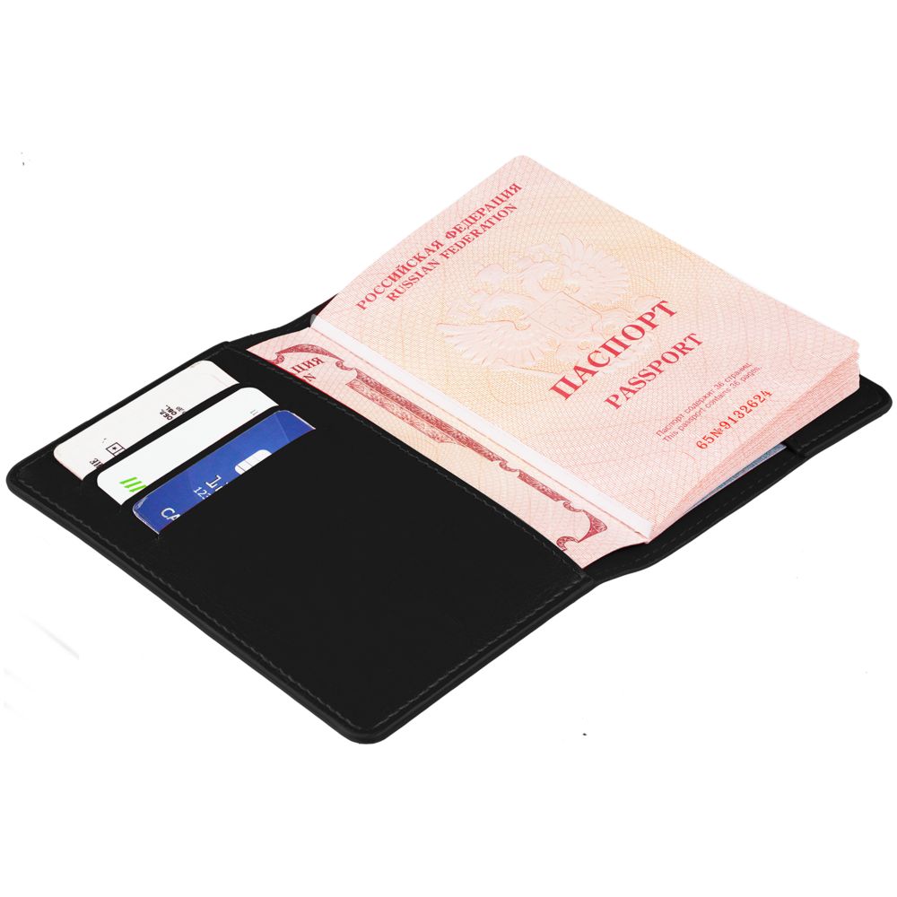 Обложка для паспорта с тремя отделениями для пластиковых карт. -