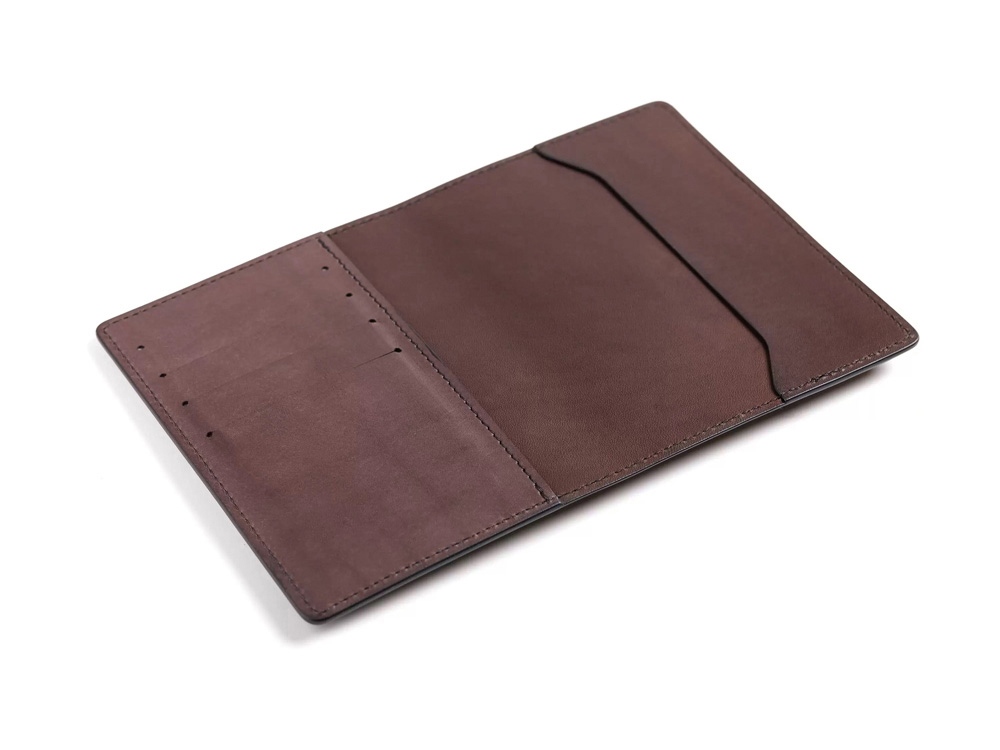 Классическая обложка из дублированной кожи, прокрашенные края, аккуратный шов, прорези для четырёх карт, место для паспорта и документов на машину. -