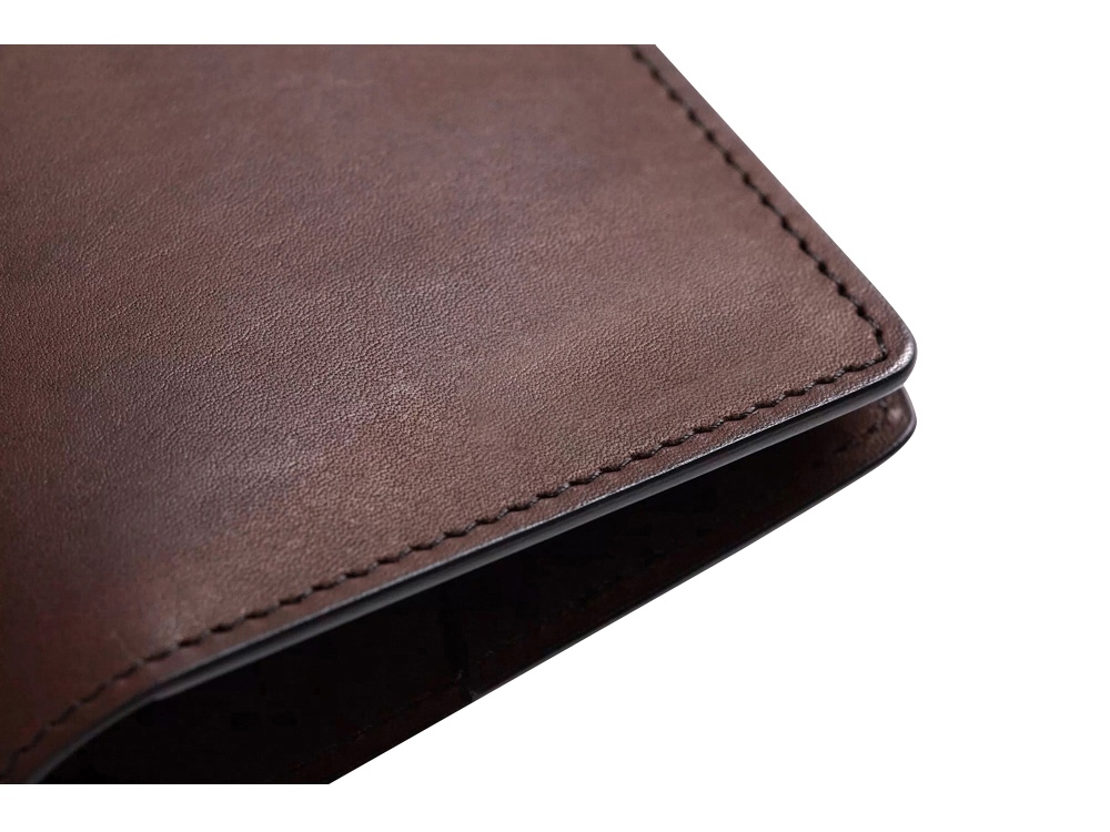 Классическая обложка из дублированной кожи, прокрашенные края, аккуратный шов, прорези для четырёх карт, место для паспорта и документов на машину. -