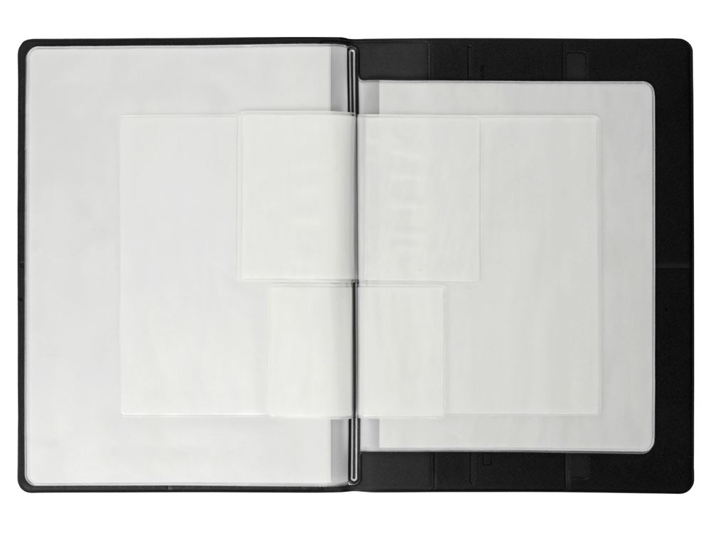 Органайзер формата А4 позволяет хранить документы в расправленном виде, защищая их от механических повреждений. С ним свидетельства о рождении, браке, важные документы, чеки и другие бумаги будут рассортированы и доступны для просмотра, будучи помещенными в прозрачные кармашки из пленки ПВХ пяти форматов: 168 х 216 мм, 65 х 95 мм, 90 х 120 мм, 228 х 304 мм, 205 х 255 мм. Прозрачные карманы выполнены из прочной фактурной пленки, стойкой к истиранию, общее количество — 20, по 4 кармана каждого из пяти типов.