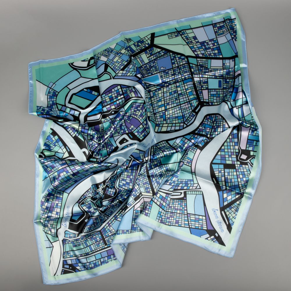 Платок из шармуса, подходящего для сублимационной печати. Края обработаны оверлоком.