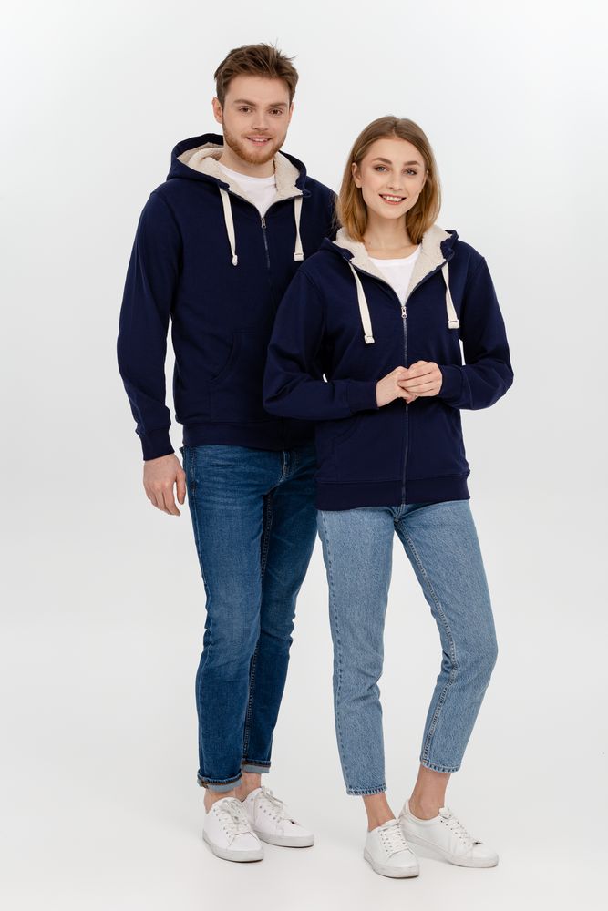 Толстовка унисекс на молнии с капюшоном.- Края рукава и низ изделия выполнены резинкой